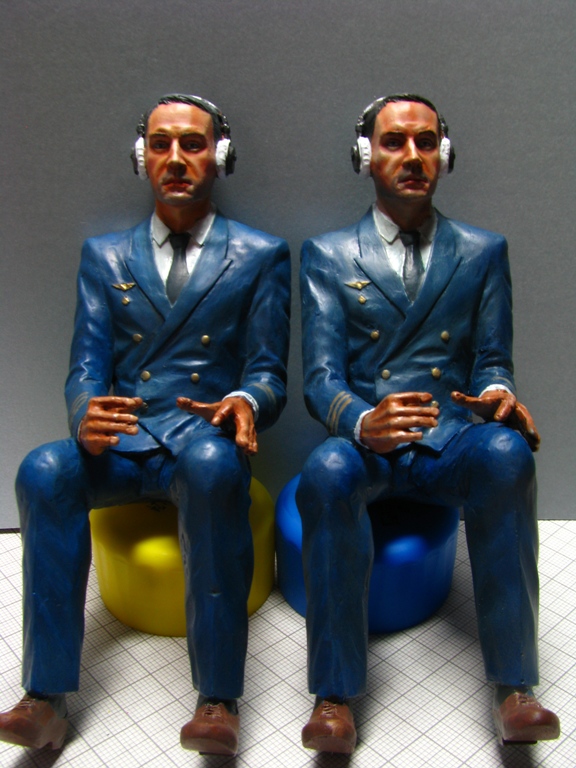 Апплодирую стоя! Вложиться в такие сроки и при такой отливке!!!! Жду продолжения! Что касается блеска, то наверное можно сделать скидку на то что ты и так из "Г... сделал конфетку" и то что эти фигуры будут сидеть в кобине самолета и большую часть будет закрыта и падающая тень, то все в полне прилично!
