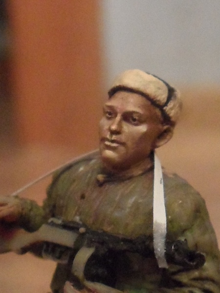 Красил акрилом Валехо, фигурка Танк. Пока что готово только лицо и ушанка.