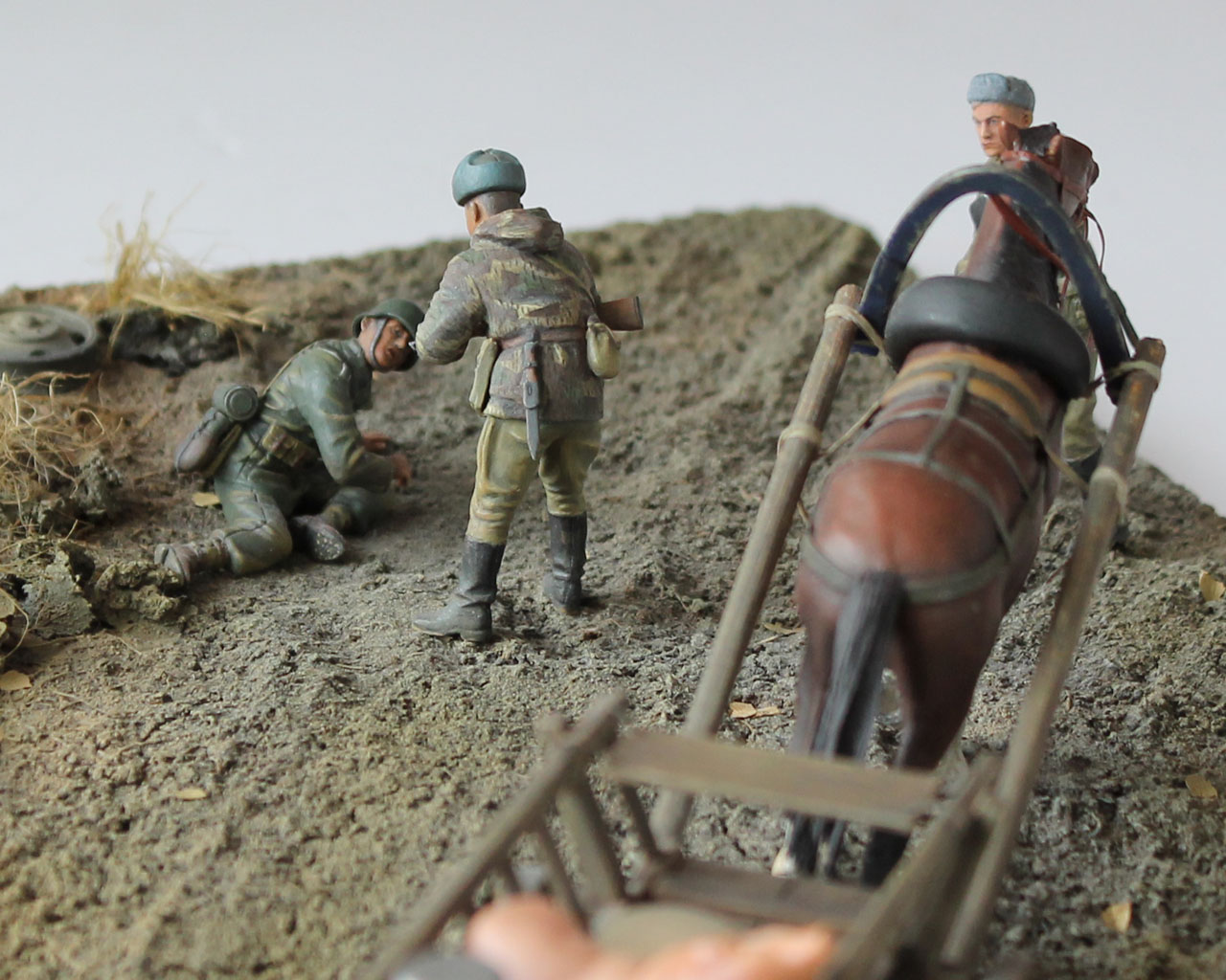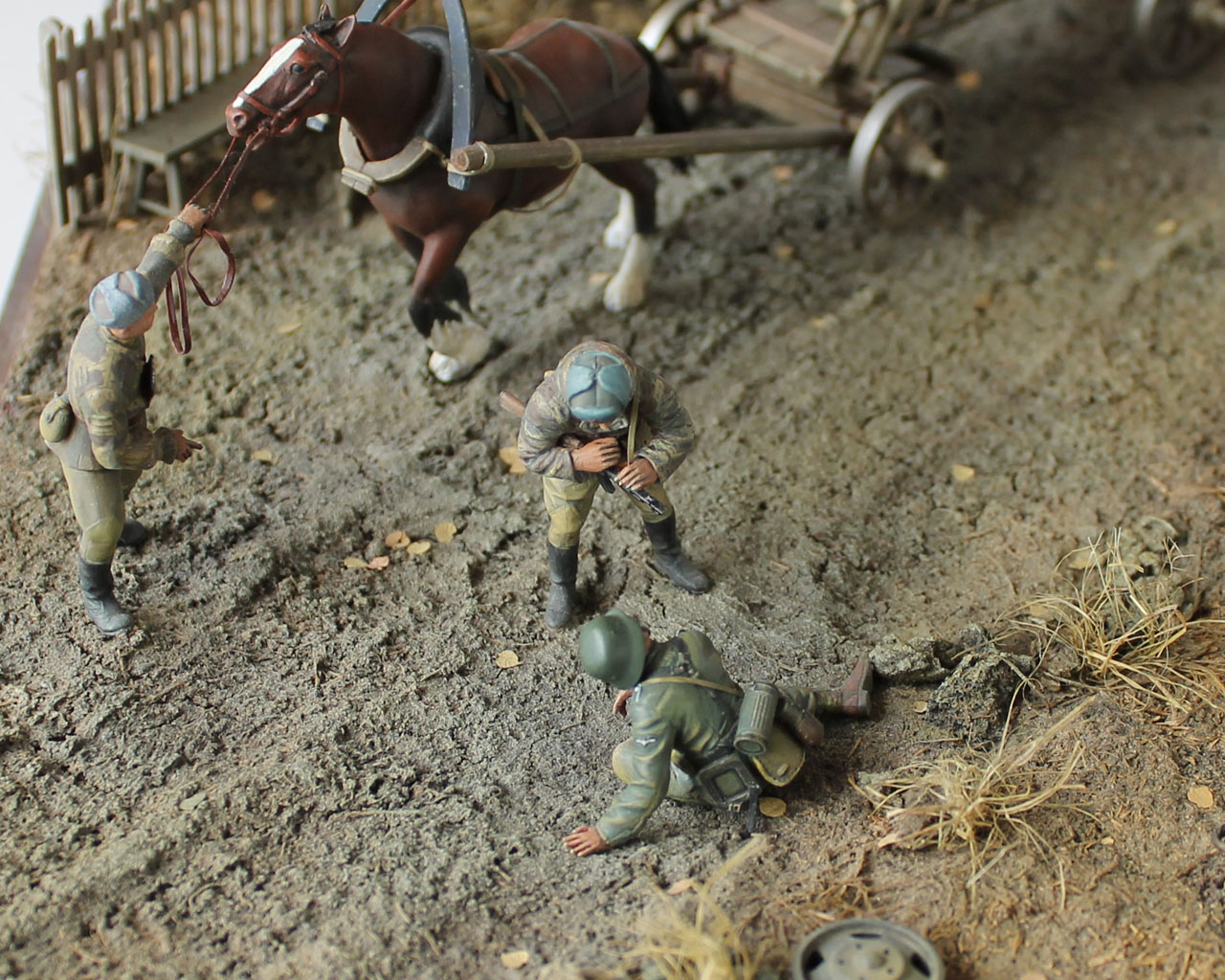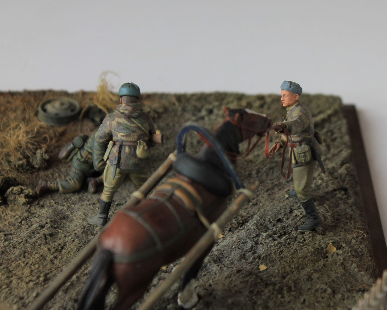 Последняя по времени диорама, над которой я работал около года назад. В планах добавить пару фигур и немного мелочевки. А пока - просто работа в процессе.