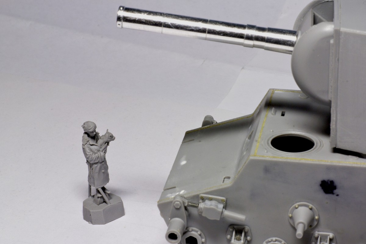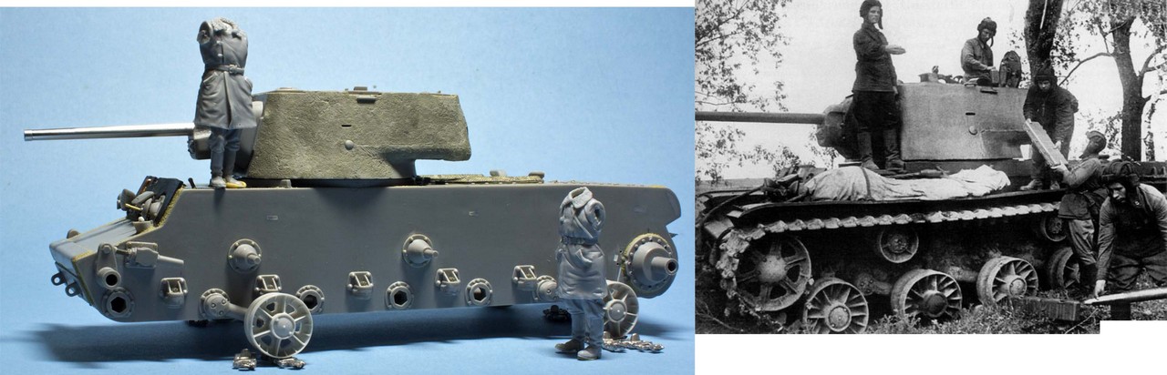 В композицию помимо КВ будет еще включен Хорьх и рассматриваю включение фигур беженцев (есть фотография этого танка с проходящими мимо мирными жителями). Может как-то так:
