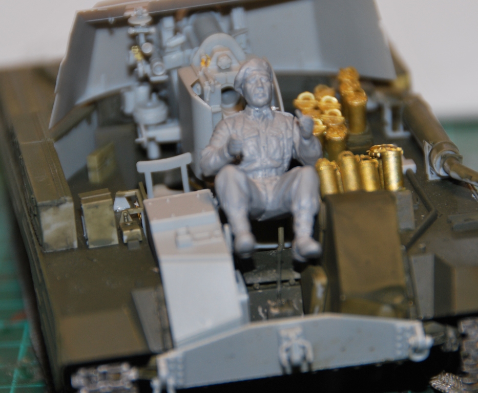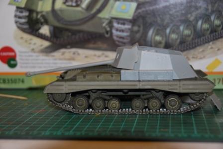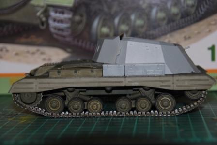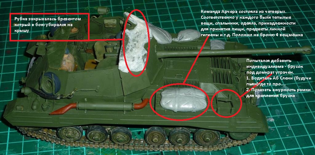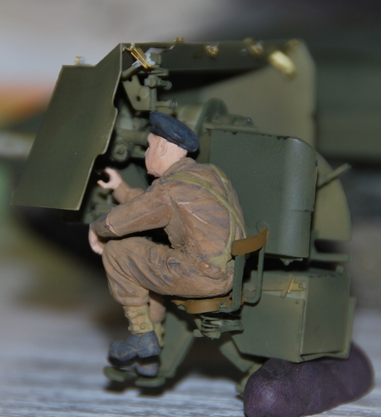 Наводчик по имени Бобби Браун (уроженец Глазго, хороший художник) прильнул к окулярам, на крыше рубки сложенна "брезентовая" крыша (сделанная из проклеенной салфетки)