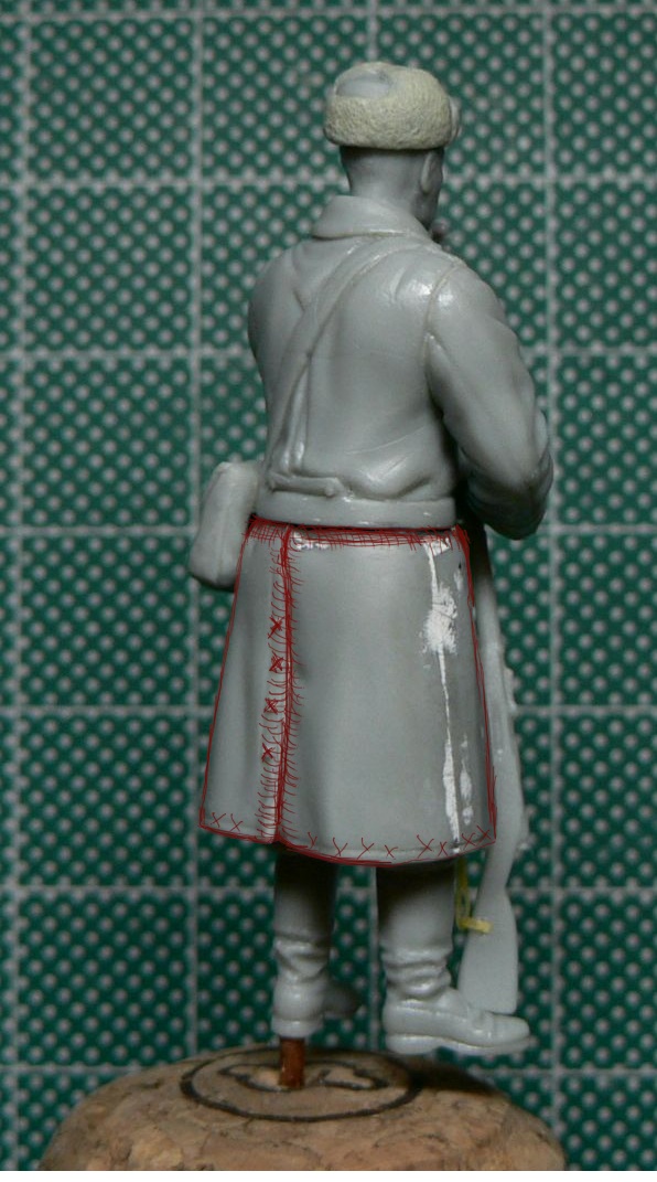 Сзади фигурка смотрится не очень,шинель под ремнем стоило бы сгладить, а то выглядит как торс отдельно, все остальное ниже ремня отдельно.