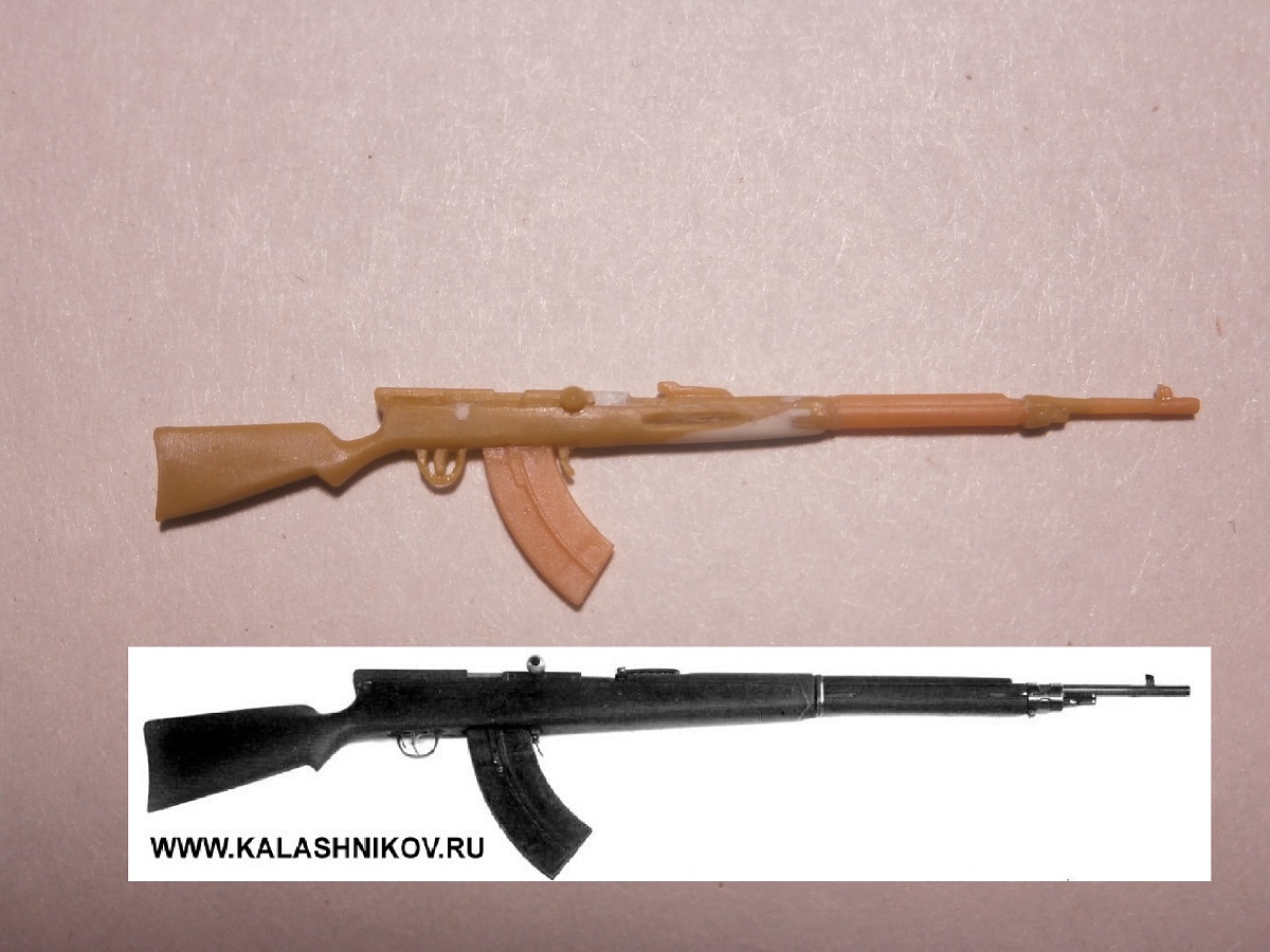 Из запчастей получилась вот такая самозарядная винтовка Федорова обр.1913г с магазином по образцу ружья-пулемета Мадсен. Для сравнения пропорций реальное фото винтовки.