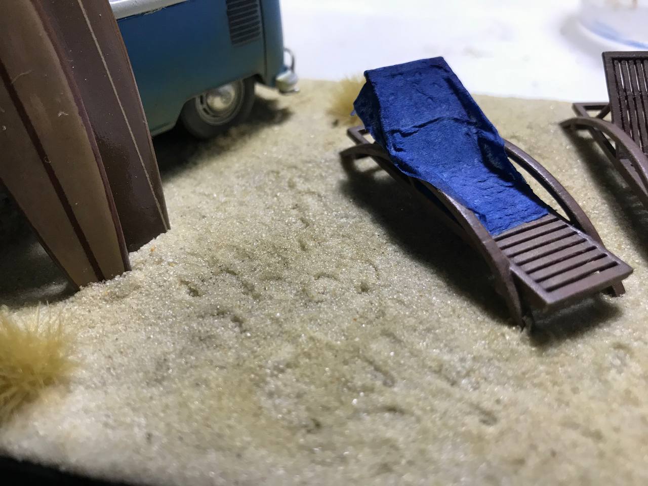 По окружению, вначале взял маленькую подставку, но появилось желание сделать пляж, в итоге не не пожалел.
