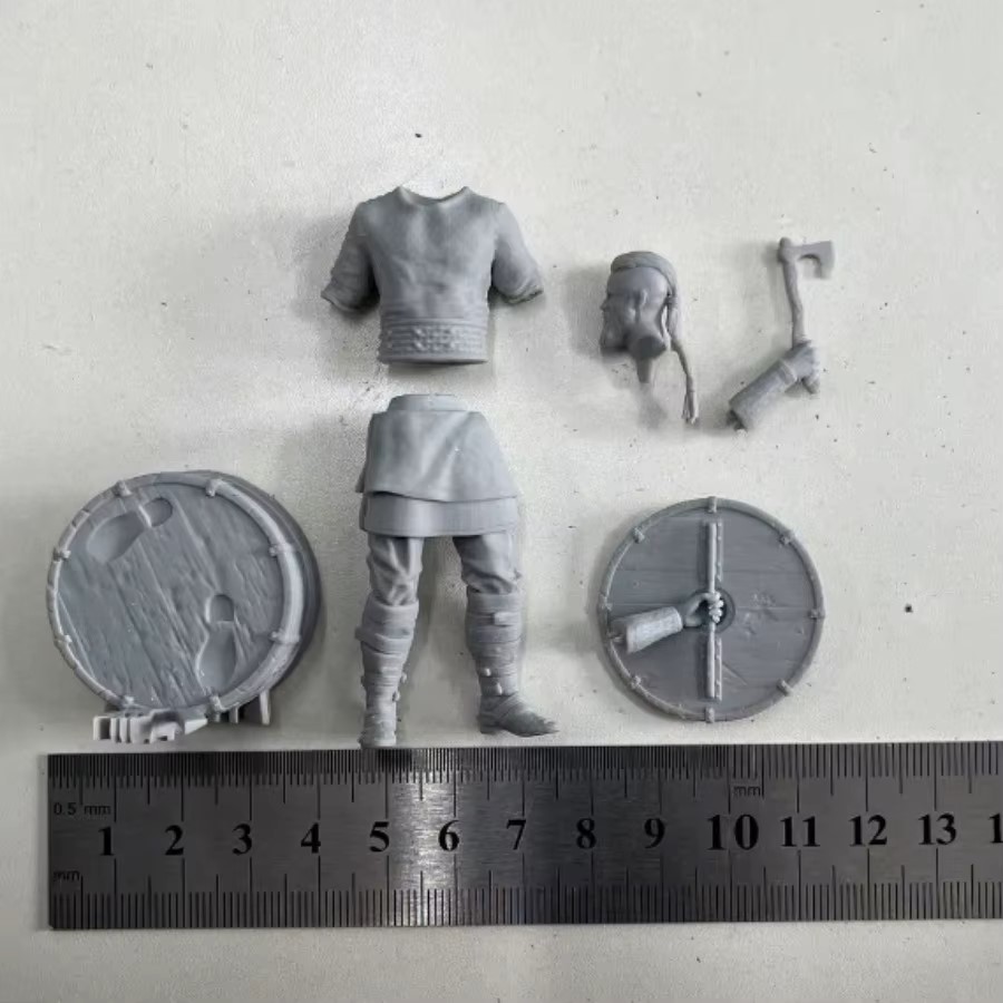 Доехала посылка быстро и без повреждений, качество литья на высоте. Единственный дефект у бойца с голым торсом, минимальный недолив в районе пояса, который будет закрыт топориком на боку. Также слегка повело рукоятку топора и щит, но ничего страшного в этом нет, все легко чинится.