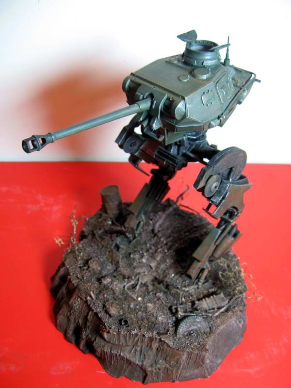 Лапы очень круто вышли.Возьму на заметку.Башню бы чуток доработать,футуризма добавить,но это мое мнение.Молодец!Если выдерживать стиль то сюда фигурка эссесовца просится в каске, черном плаще,противогазе а в руках MG42 персонаж из Волькинштейна.