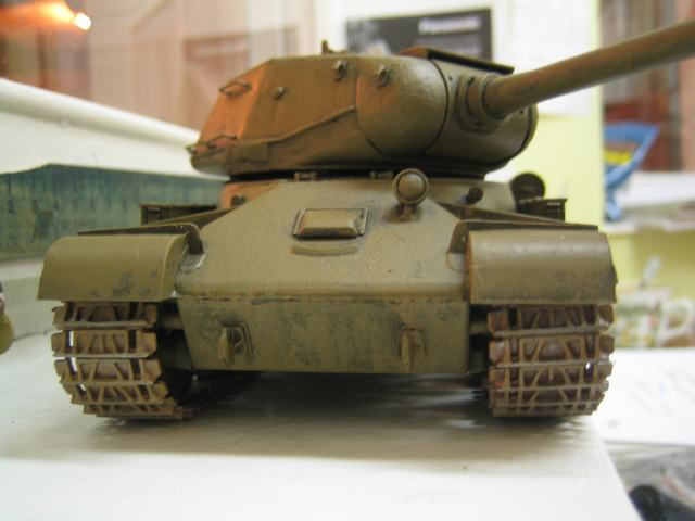 И общее замечание по гусеницам. При движении танка все выступающие участки траков обдираются до блеска. Поэтому надо было методом "сухой кисти" пройтись по гусеницам стальным цветом (не путать с алюминием!). Операция простенькая, а эффект - потрясающий!