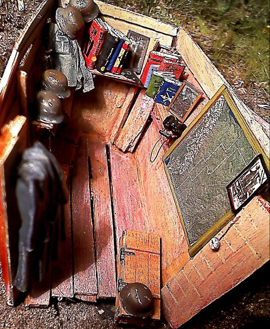 делаю диораму на тему Нормандия. на диораме предусмотрена система окопов и полевых креплений. блиндаж один из примеров. он предполагается быть открытым.