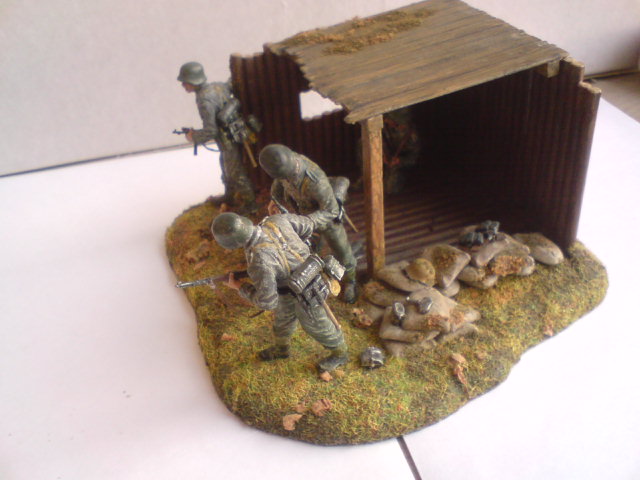 Ну, и италовский "командный пост" - совершенно загадочная конструкция. Как держатся вертикальные брёвнышки над амбразурой, на что опирается балка перекрытия, и от чего вообще может защитить подобное сооружение - сплошные загадки... Лучше уж сделать самостоятельно что-то более реалистичное из подручных материалов.