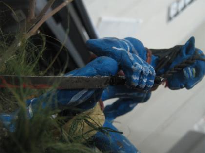 питерская пластика, даже необжег ибо старая. краска - акварель+белая гуаш+ПВА. подставка гипс, земля+ПВА, сантехнический лен. на самом деле работа немного лучше чем на фотке, исправил часть косяков с покраской и травой.