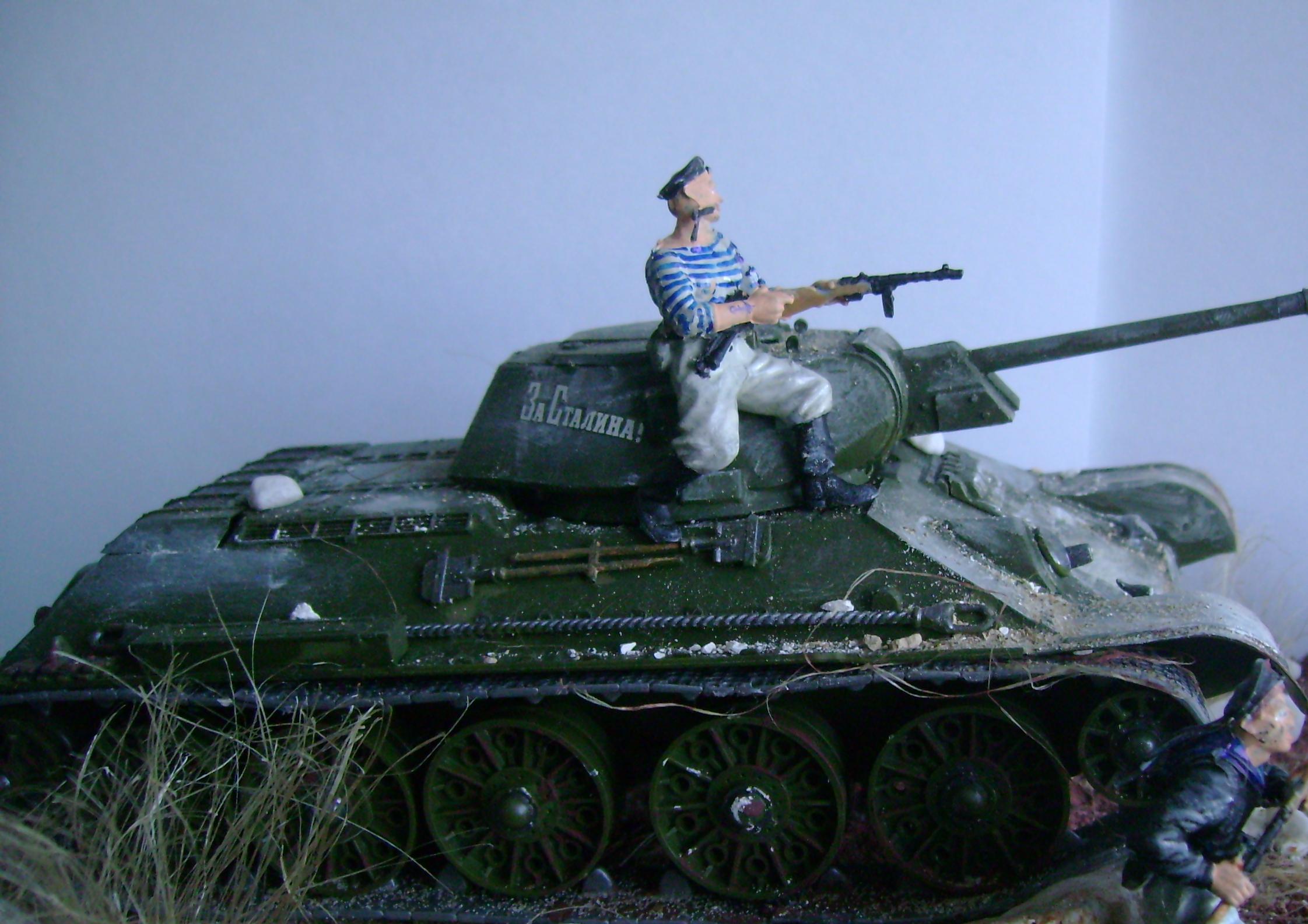В работе использовал известный набор от Звезды "Советская морская пехота" и фигурки от Мастербокса. Т 34/76 от Звезды.