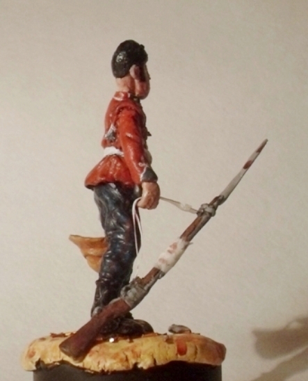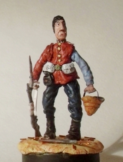Томми Аткинс - солдат роты «Б» 24го пехотного полка. Сражение при Роркс-Дрифт, 22 января 1879 года. 139 британских солдат, из них 35 раненых и больных, против 4500 зулусских воинов. Винтовки «Мартини-Генри» раскалились от непрерывной стрельбы, многие солдаты обматывали пальцы и цевье оружия тряпками. Плечи солдат от сильной отдачи превратились в сплошной синяк. (Вот и пригодился этому Томми оторванный рукав.) К концу боя у британцев, отразивших три атаки, оставалось около 900 патронов на всех. Отбиться в четвертый раз они не надеялись. В ходе боя, с пяти часов вечера и до четырех часов утра, было истрачено более 19000 патронов, погибло 17 солдат и около 400 зулусов (позже, подошедшими британскими войсками, было добито ещё около 800 раненых туземцев; и ещё неизвестное количество раненых, связывавших отступающих, добили сами зулусы).От пережитого стресса, усиленного климатическими условиями январской Африки, многие солдаты заболели, некоторые из них умерли в госпитале.