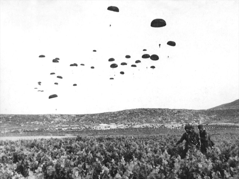 В отличие от парашютистов большинства других стран, немецкие парашютисты прыгали без карабинов и пулемётов (десантники, вооружённые MP-38/40, покидали самолёт с оружием, так как компактность позволяла крепить его под подвесной системой парашюта), которые сбрасывалось отдельно — в контейнерах. Конструкция немецкого армейского парашюта была очень надёжна, но не позволяла управлять направлением полёта, и десантники нередко приземлялись вдали от своего вооружения. В эти моменты они могли рассчитывать только на личное оружие — пистолеты и ручные гранаты, которыми набивали объёмные карманы десантных комбинезонов. Многие парашютисты были убиты именно при попытках добраться до контейнеров с оружием.