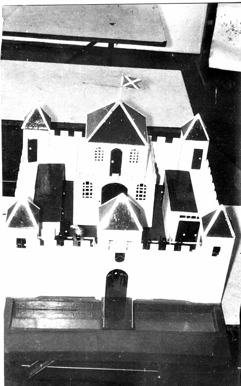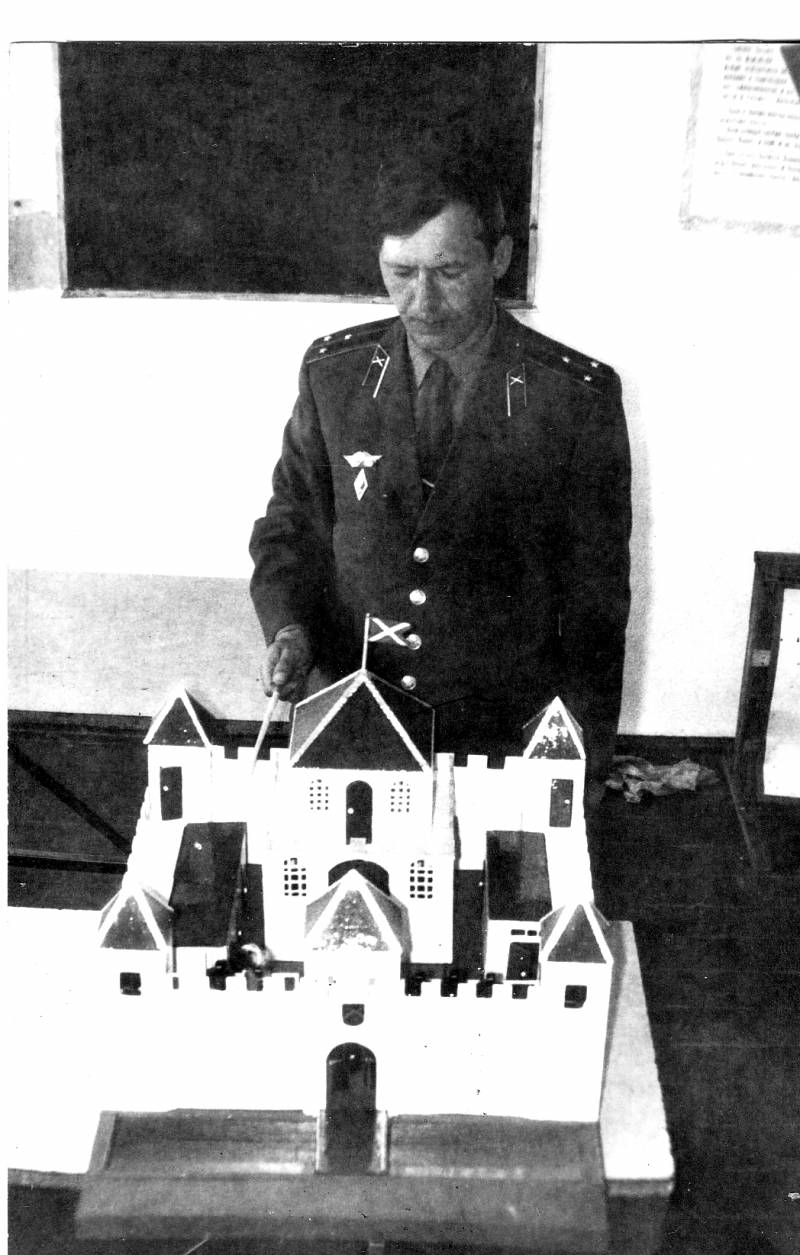 Перебирая старые фотографии, нашёл вот такую. Это макет рыцарского замка, изготовленного полностью из фанеры в далёком 1993 году для кабинета истории.