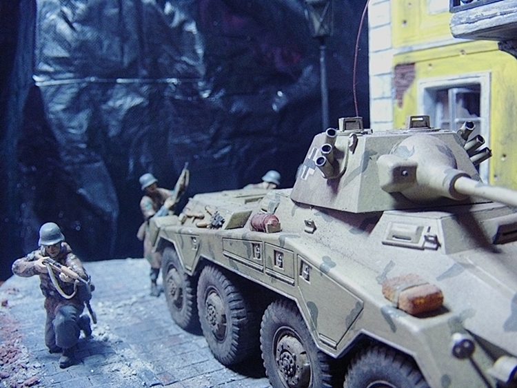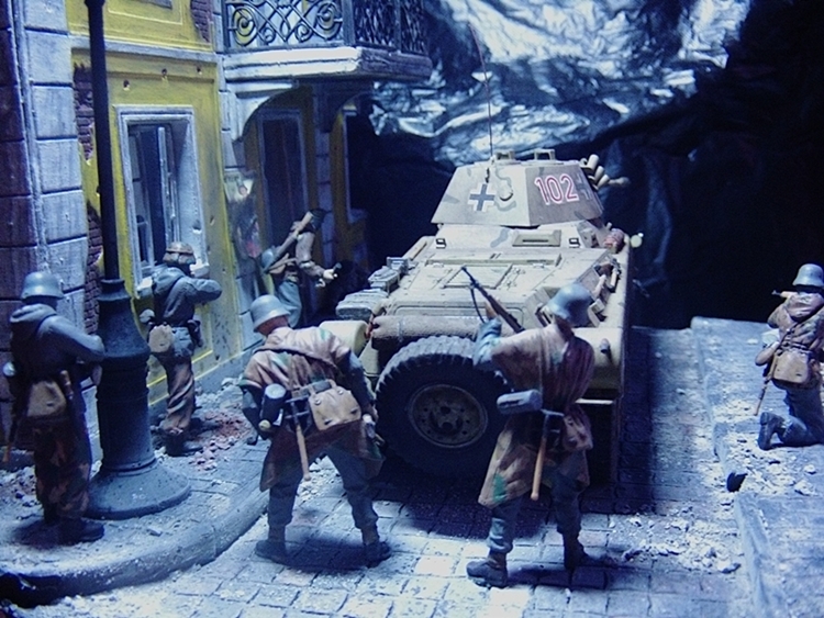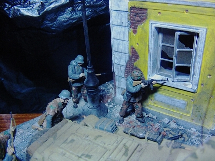 честно, сам не ас съёмки миниатюр, но тут совсем не понятно получилось...видно что немцы, видно что куда-то идут. но вяло. хм. вот да. очучения боя нет... а больше ничего не видно=( ваша предыдущая работа как-то поатмосферней была