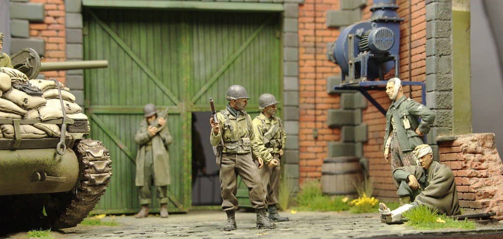 По легенде ,маленький завод внормандии был разрушен давненько,поэтому мусор убран и он продолжал работать пока не прибыли американские войска.Двое гансов будучи ранены не успели слинять и были захвачены собственно этими войсками.