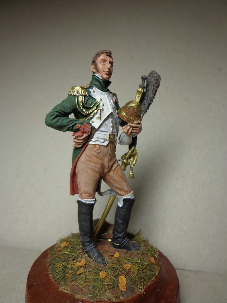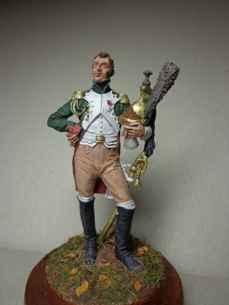 Ещё одна фигуренция из белого металла. Производитель Вам всем известен. Прально, ЕК-Кастингс. На этот раз лицензионная. Роспись снова темперой. Антуражик на подстваке тож вполне традиционен - лён, шпаклёвка, нарубленные листья из обувной бумаги. Жду гнилых помидоров.