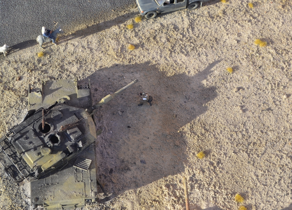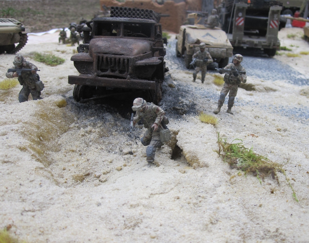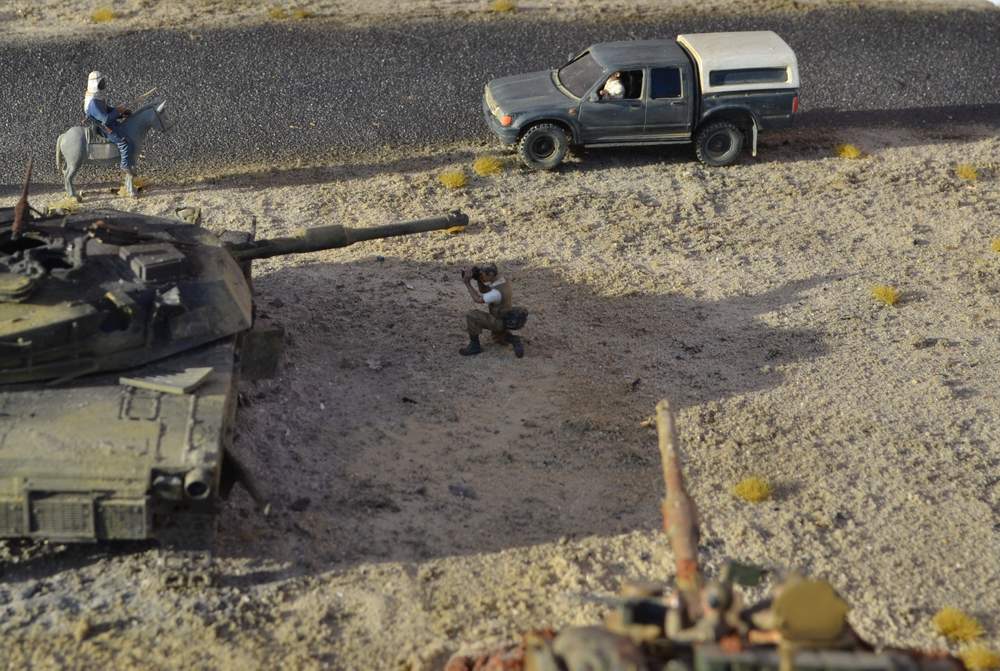Всем добрый день! Композиция на тему война в Ираке. Размер как всегда мах 1,5х0,75. Это импровизация. К историческим событиям не привязана. Военная техника и пехота соответствует событиям в Ираке. Делалось долго, поэтому половина была сделана до регистрации на форуме - это я к тому, что критку постарался учесть максимально.