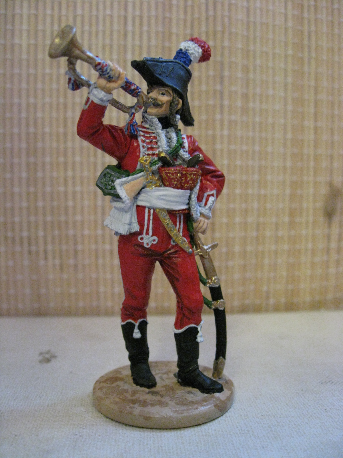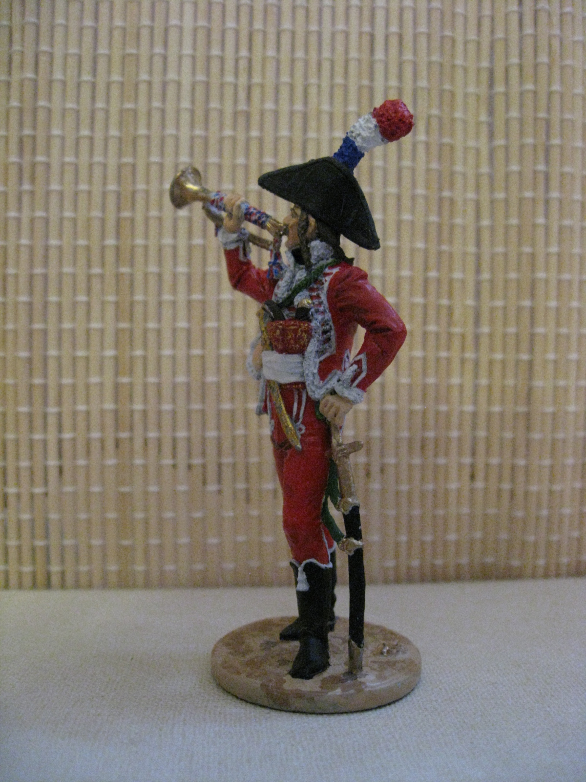 Дромадеры - одно из самых экзотических подразделений наполеоновских войн. Верблюжья гвардия Египетского похода Наполеона. Столь любимая всеми французскими командующими, что каждый вносил свои собственные изменения в форму дромадеров. Наполеон заказал у своего главного квартермейстера Франсуа Бернойера «необычную и забавную» форму. Генерал Клебер добавил больше эстетики, приглушив арабские мотивы. Генерал Меню после гибели Клебера добавил еще что-то своё. Данный мундир основан на образце, который прибыл из Египта в 1802 году и хранится в Доме Инвалидов в Париже. Скорее всего это клеберовская форма с легкими изменениями Меню. Поэтому мундир имеет достаточно высокую историческую достоверность. Разве что не очень понятна расцветка шнура на трубе. Есть варианты, где она красная, либо белая. Павел Алехин в своей книге придерживается варианта трехцветного шнура национальных цветов флага.