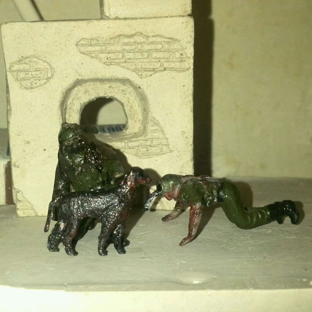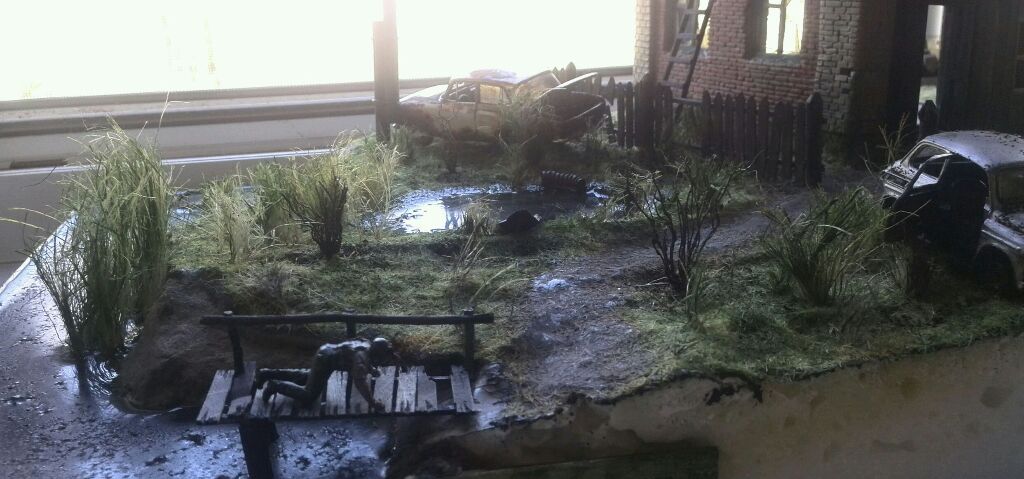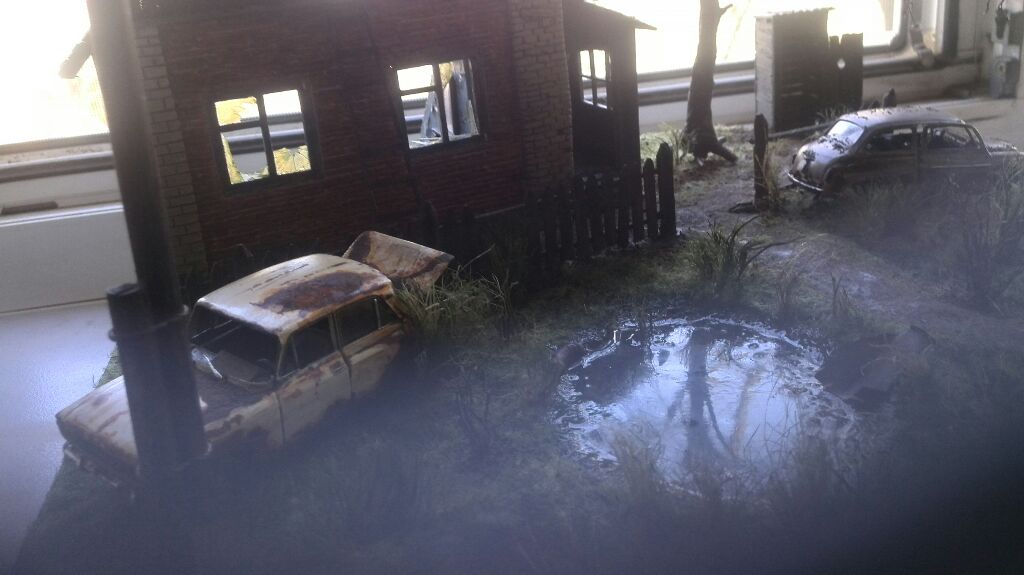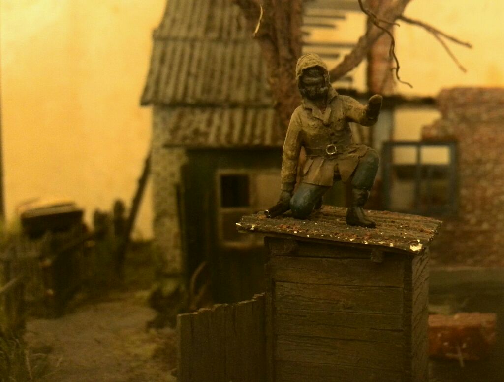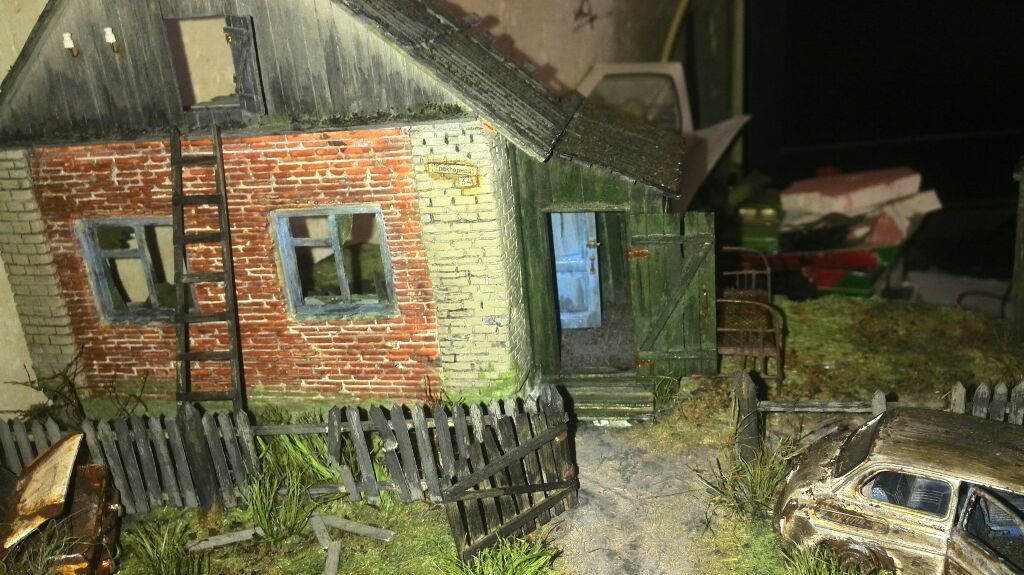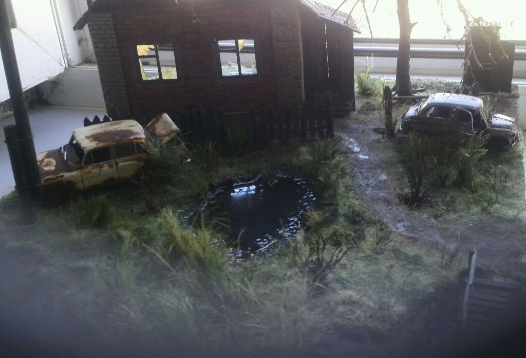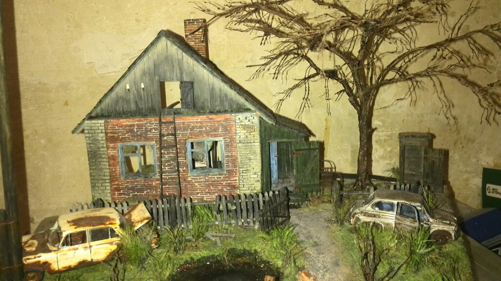 Здравствуйте друзья!))) Хочу выставить на ваш суд свою первую работу. Сделана она в не типичном для этого дела масштабе - 1:43! Работа ещё не завершена и мне бы очень хотелось, что бы профи этого дела не прошли мимо этой темы и дали качественную критику и советы - приму с благодарностью! Кидаться можете не только табуретами но и диванами!))) Постараюсь быть послушным и внимательным учеником! Диорама посвящена моей любимой игре Сталкер. Идея её создания пришла совершенно спонтанно. Сам я ранее ни чем подобным не занимался. Основное моё хобби это собирать, то есть покупать и ставить на полочку))) модели советских и российских авто в масштабе 1:43! Собственно парочку таких моделей я и использовал на данной диораме. Автолегенды СССР -может кто слышал? Всё кроме маФынок самодельное!Хотя над ними тоже пришлось немного поглумиться))) Ещё есть две фигурки Снорка и Сталкера в 48 масштабе, но они, прямо скажу, вышли не айс, поэтому предстоят переделке!Делал я их из набора каких то лётчиков, к сожалению выкинул давно коробку, поэтому названия не вспомню. Краски использую акриловые Тамия и ХоббиКолор, также использую смывки Валеджо и художественную пастель.