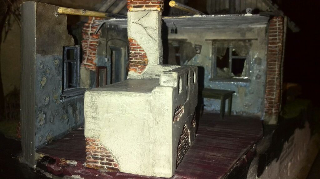 Работа приближается к завершению. Закончил крайний объект, который непременно хотел видеть на диораме - русскую печь!