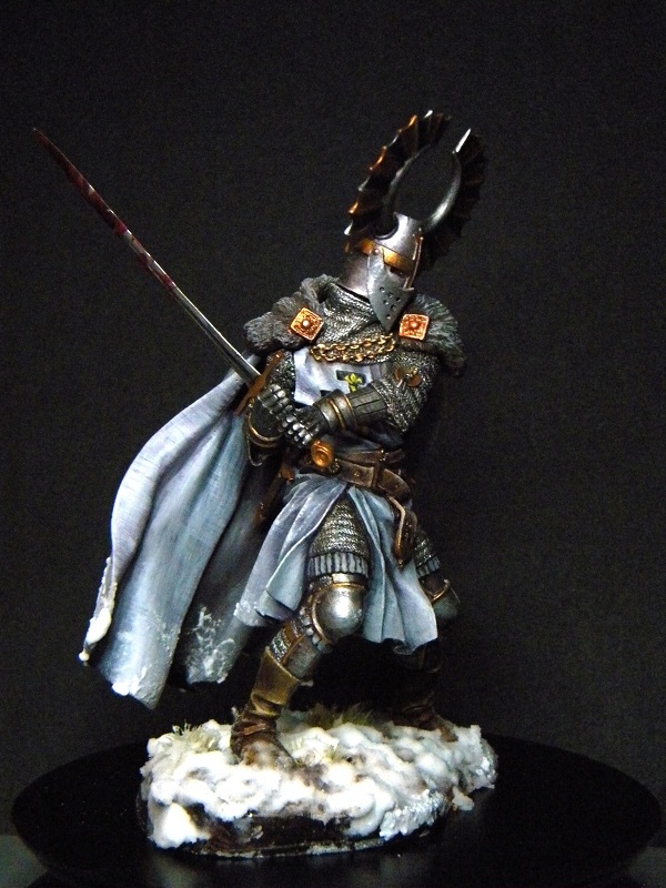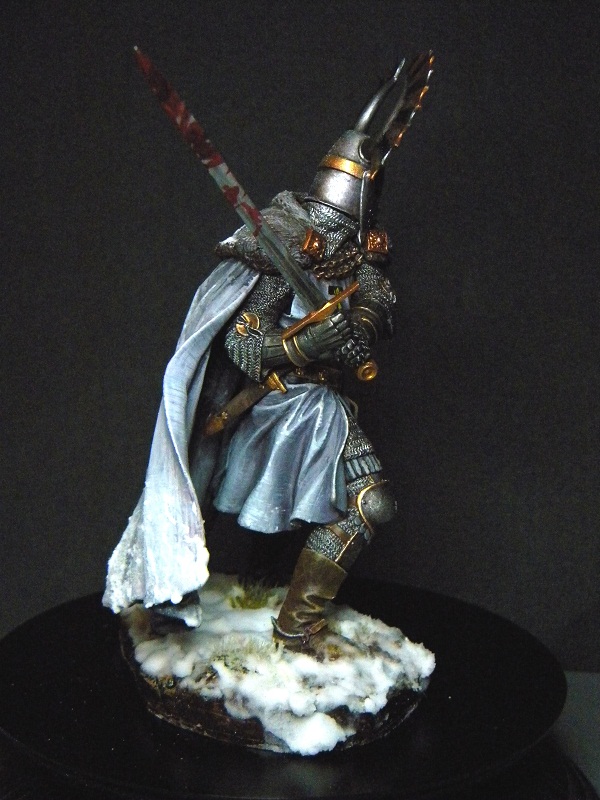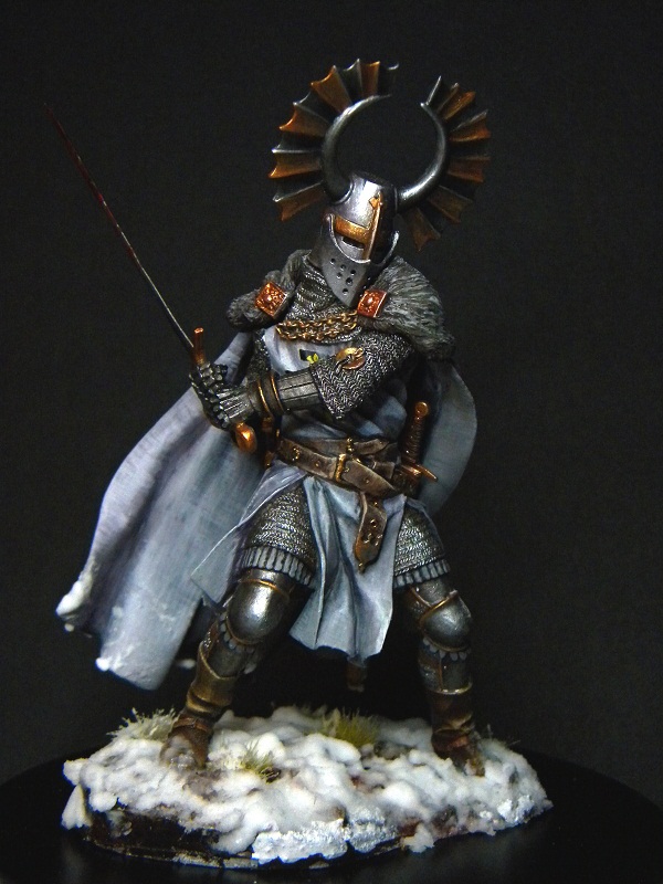 Отличный рыцарь. При таком Уровне росписи, смутили два момента. Кровь на мече и кусок подставки не прокрашеный. Наверное хотелось быстрее закончить. Общее впечатление прекрасное. В качестве снега я использую соду, результатом очень доволен.