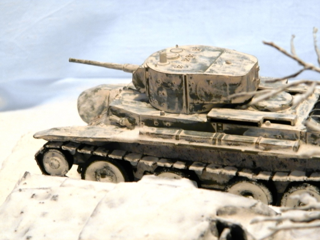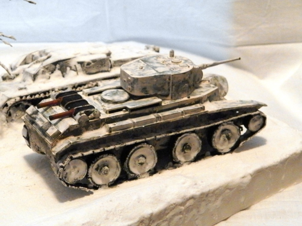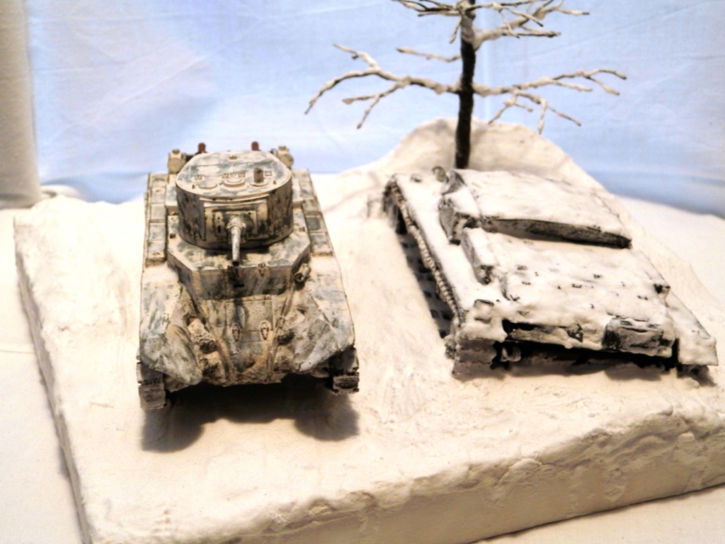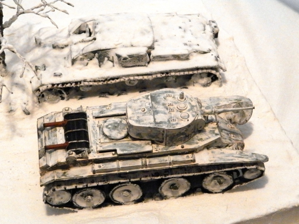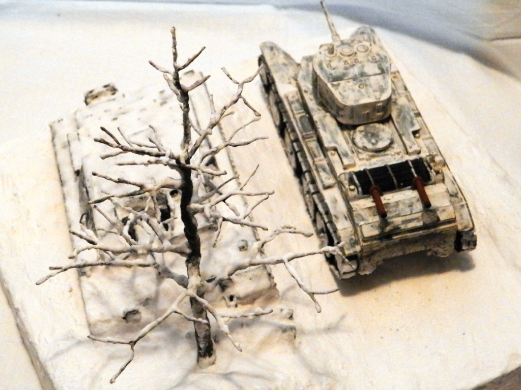 БТ и артштурм от Звезды. Основание папье-маше, снег сода+пва, дерево из проволоки.