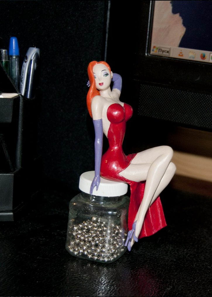 Здравствуйте. Предлагаю Вашему вниманию фигурку кино-персонаж. Джессика из фильма "Кто подставил кролика Роджера". Лепила из папье-маше шпаклевала потом красила акрилом. ". Высота 15 см. от каблука до макушки в сидячем виде (на то чтобы из этого вывести масштаб моих математических знаний не хватает извините).