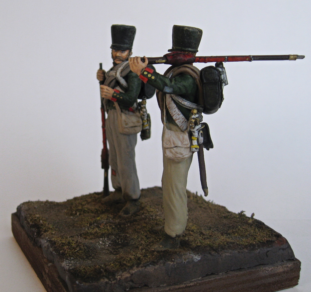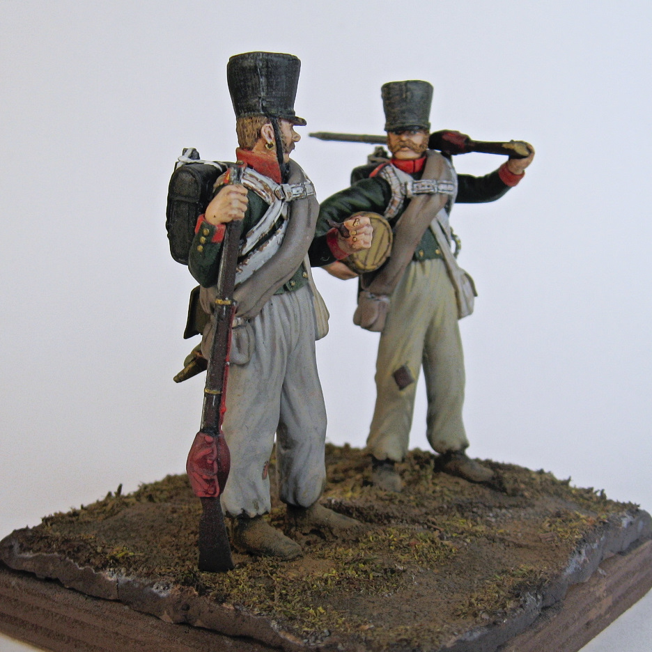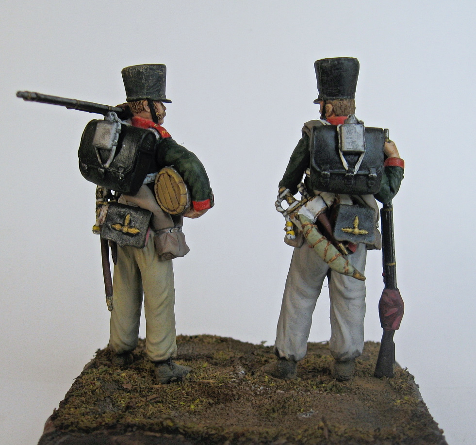 Изображены рядовые 3-й фузилерной роты, 1-о батальона Московского гренадерского полка, на период заграничных походов 1813-14 годов.
