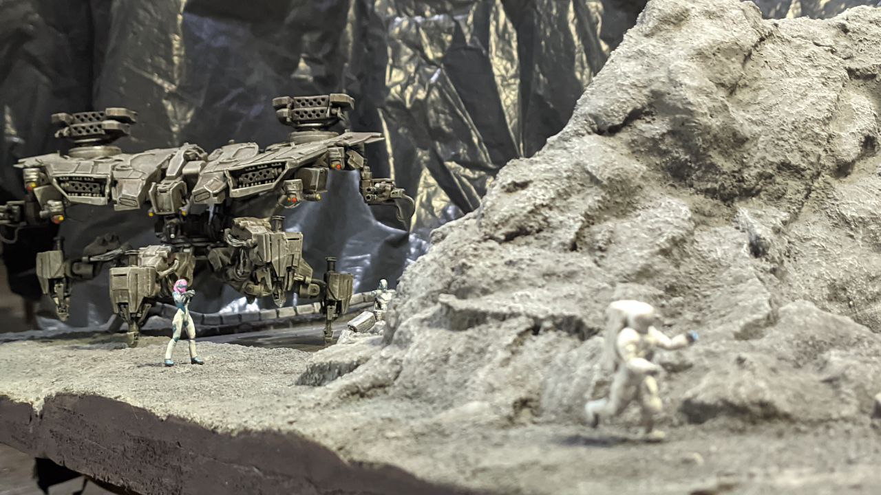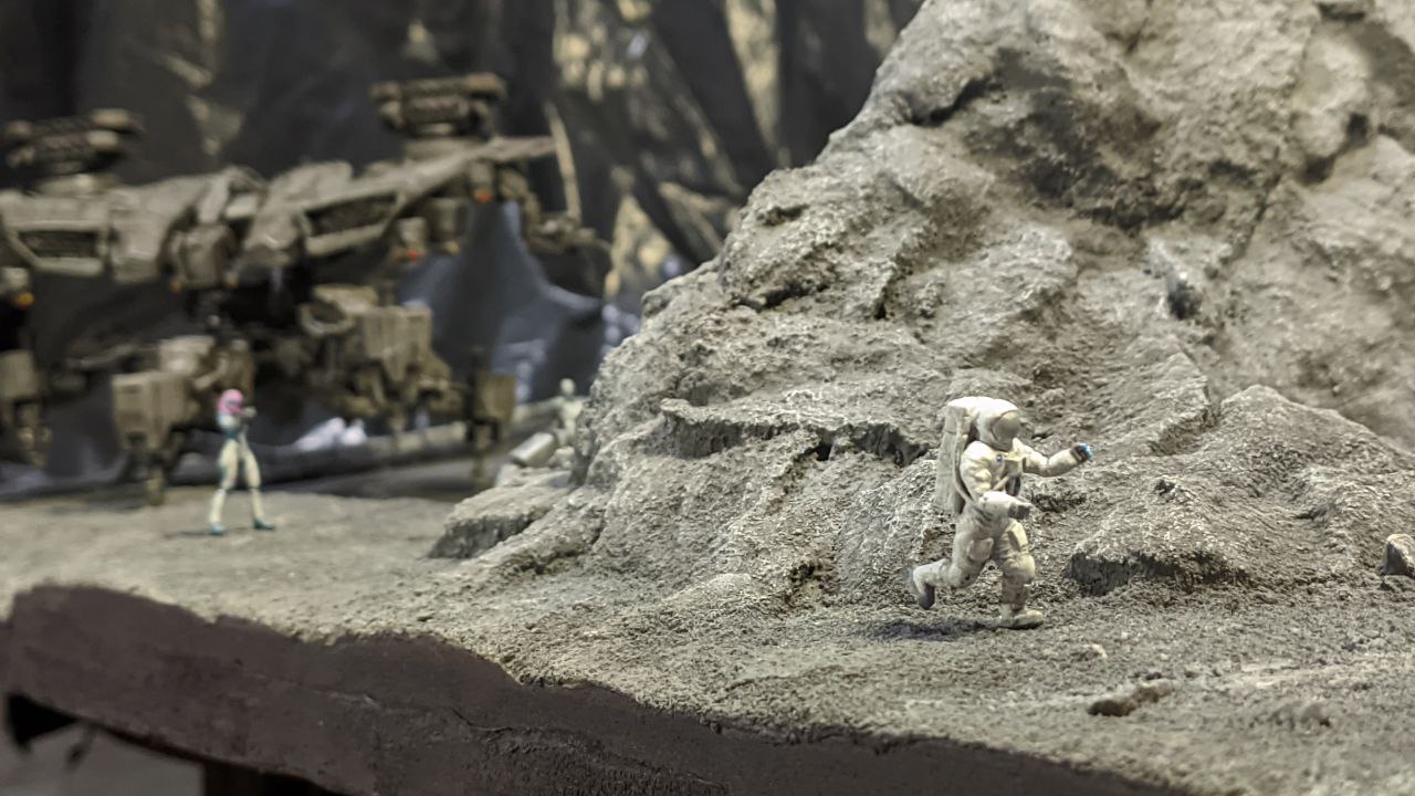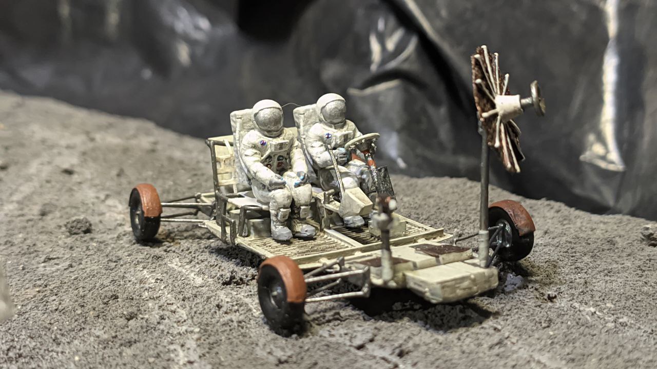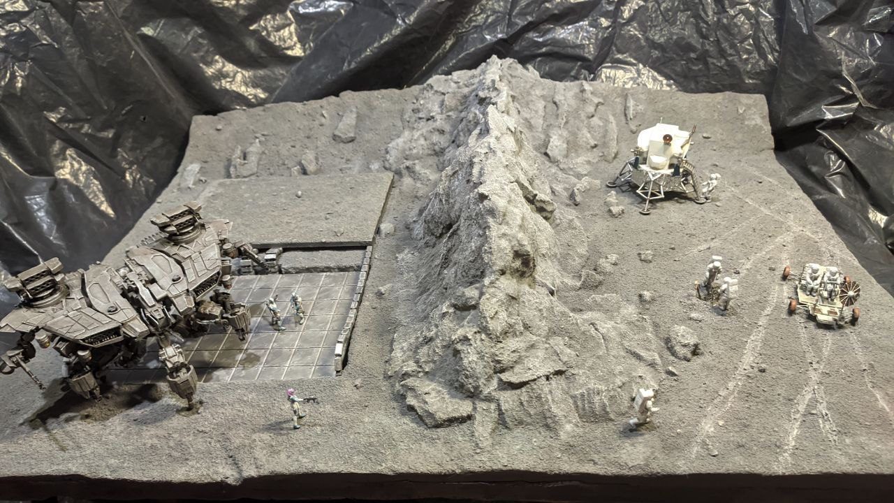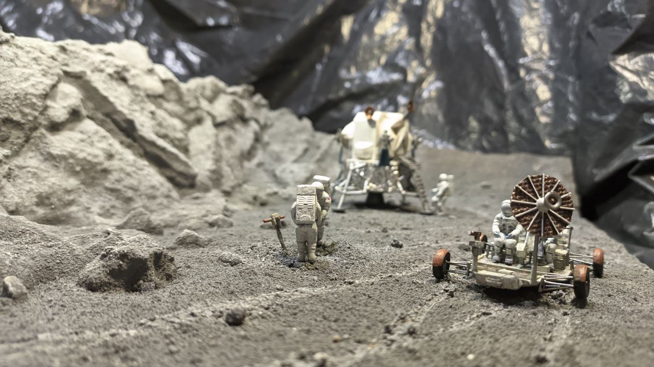 Фантастически - юмористическая диорама. «Хьюстон! У нас проблемы!!!» Размер 675х510х140 мм. Масштаб 1:72. Все модели и фигурки 3д печать. Взяты из открытых источников. Краски акрил. Основа - вспененный полистирол. Терра - поролон, шпаклевка, песок, мелкий гравий, цементная пыль и ПВА. Мой ответ на многолетний вопрос - были ли американцы не луне?. - Да были! Но что-то пошло не так ..........