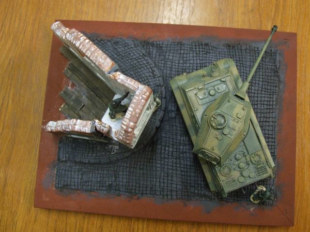 Королевский тигр - Дракон, Пантера - Хасигава, солдаты - италери вроде) 72 масштаб, будут добавлены кирпичи разбросанные, пару бочек.