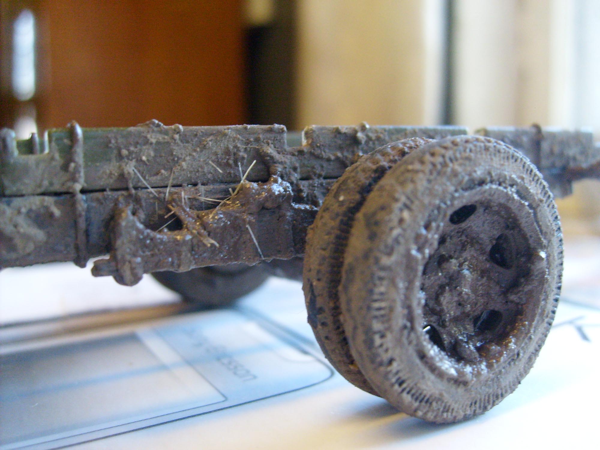 37-й, в общем, неплохо загрязнен. Понравились переходы от высыхающей к сухой грязи на боковинах кабины. Позвольте пару советов. На верхней части торпедо грязь все-таки лежит, как будто ее кистью наносили. Конечно, полуторка у вас по говнам каталась, но туда такими выплесками как раз не полетит - там будут более мелкие брызги. И еще - благо есть пока возможно, замените дугу, на которую крепятся фары. Она в наборе страшно толстая. Сделайте ее из проволоки 0,5-0,7мм