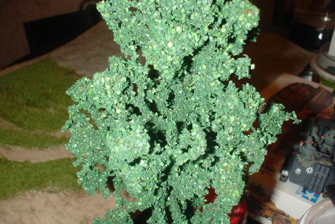 Основание диорамы.Мелконарезанные газеты в перемешку с клеем ПВА дают очень легкую, но очень прочную основу, на которую хорошо клеятся различные предметы и структуры. Из недостатков: при высыхании немного деформируется, но думаю смогу это дальше исправить. Трава выполнена из окрашенных опилок, мелко перемолотых и просееных. Дорога и песчанный грунт выполнены из мелкопросеенного песка. Зеленые насаждения все покупные, в основном немецкие от 1:87. Вся "зеленка" клеилась ПВА и немного "момент".