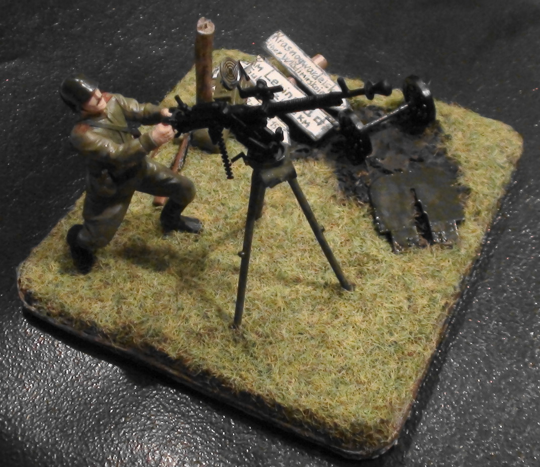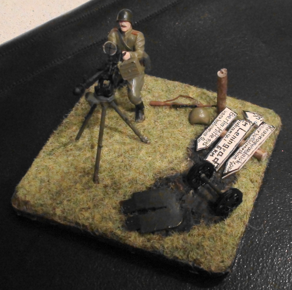 Работа не плохая... но!!!! 1-е я бы сделал затёртый пулимёт 2-е высадил бы полевую траву... 3-е затонировать бы это дело.. и фигура блестит...