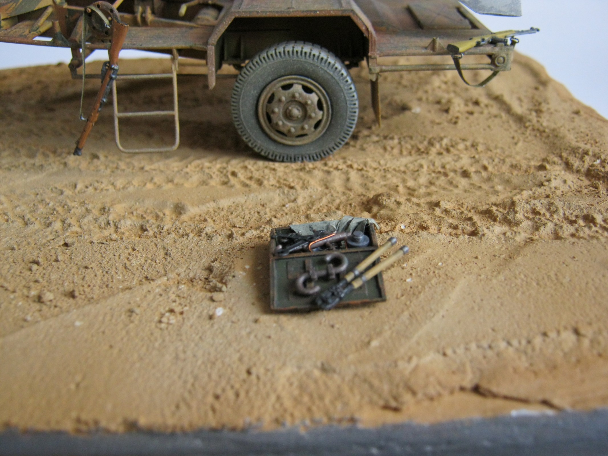 Спасибо! С сюжетом согласен... не очень. Колесо повреждено заднее, но судя по всему я его слабо прижал ( притягивал проволокой к диску) пока делал вроде было видно, а поставил и потерялось. Колесо от БТР и народ всё правильно так задумывалось. Как бы принижение противника ( как в старых фильмах про немцев).