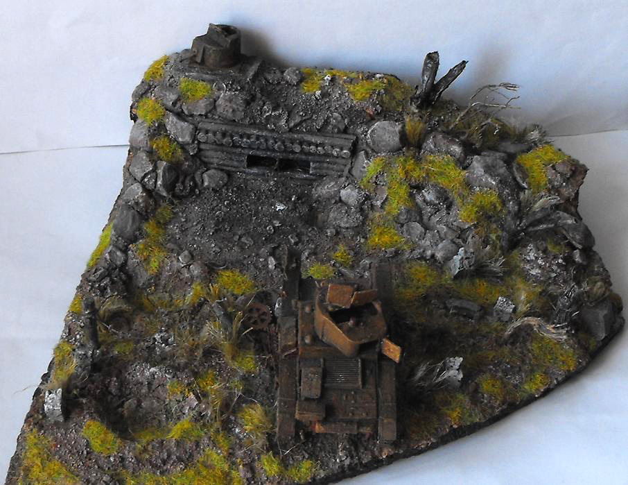 Подставка - листы прессованой пробки. Надолбы - тоже пробка. Дот самопальный, из литников, бронеколпак на доте - башенка от 2-х башенного Т-26 той же фирмы.
