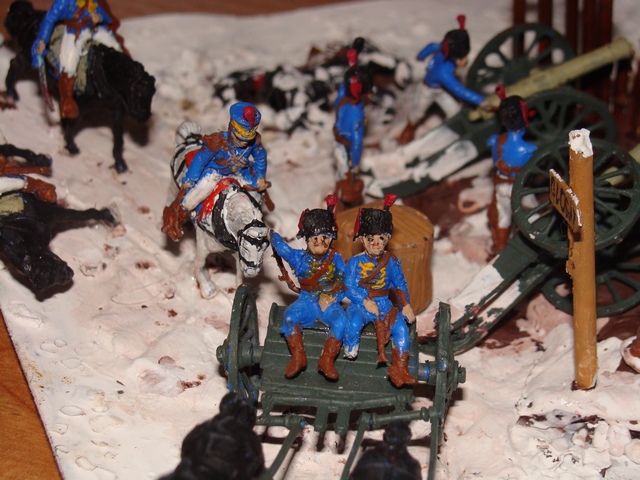 Никита, посмотрите на картинку: во время боя все эти люди бегают вокруг орудия. 1,5 метра им мало, они будут тупо мешать друг другу. Тем более если прилетит меткое ядро в ответку:так можно и оба орудия потерять. И все фигурки набора не разместить. И указатель с огневой позиции уберите, он мешает артиллеристам.Кстати, огонь ведется по крепости? Если да - то почему указатель в другую сторону указует?