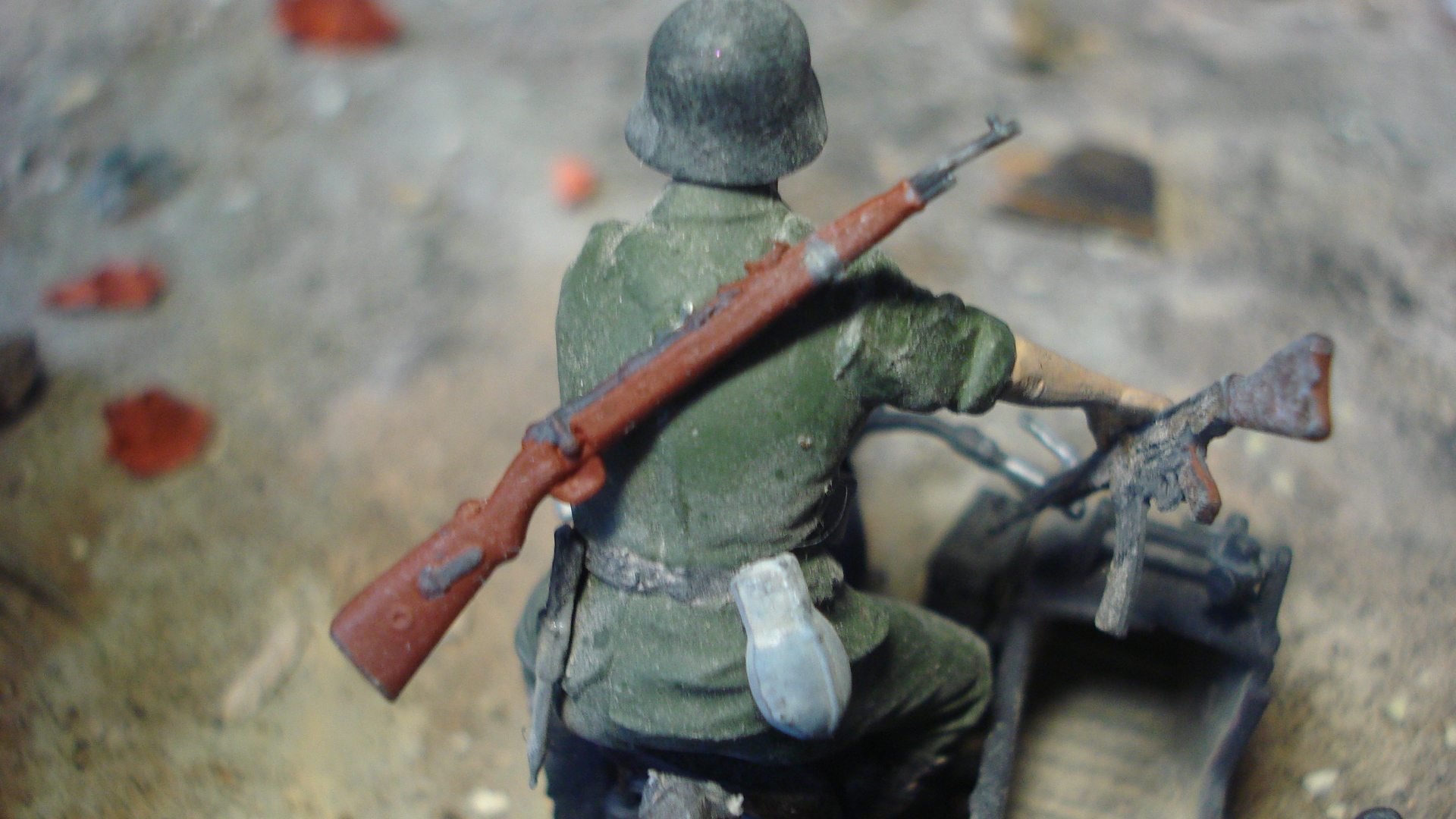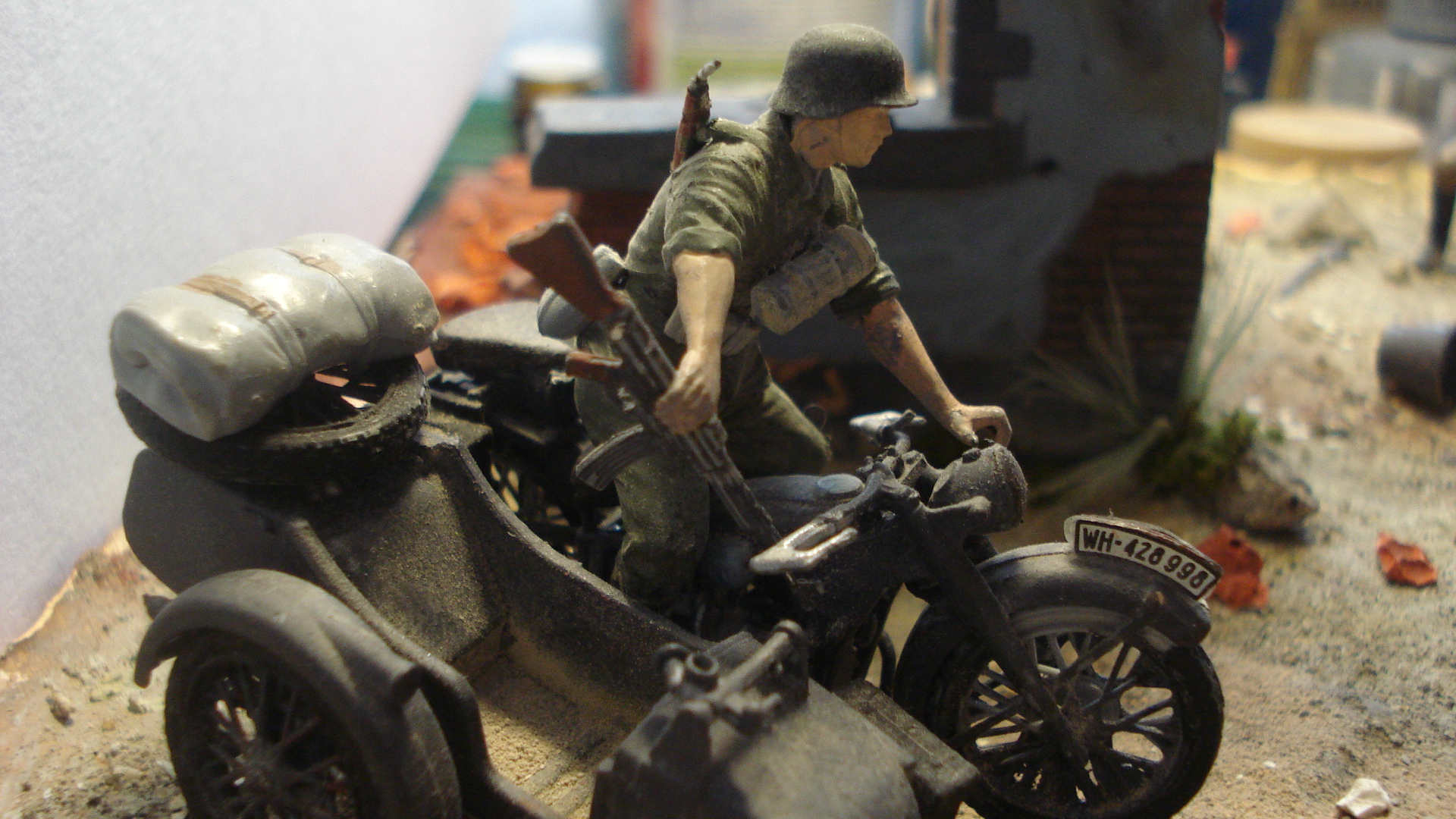 диорама была сделана 2 года назад,на тот момент мне было 13лет.в работе использовались фигуры dragon,полуторка от звезды,бочки и ведро-тамия,окрашивалось акрилом звезды.основание-гипс.битый кирпич-крошеный гипс.жду справедливых комментариев.