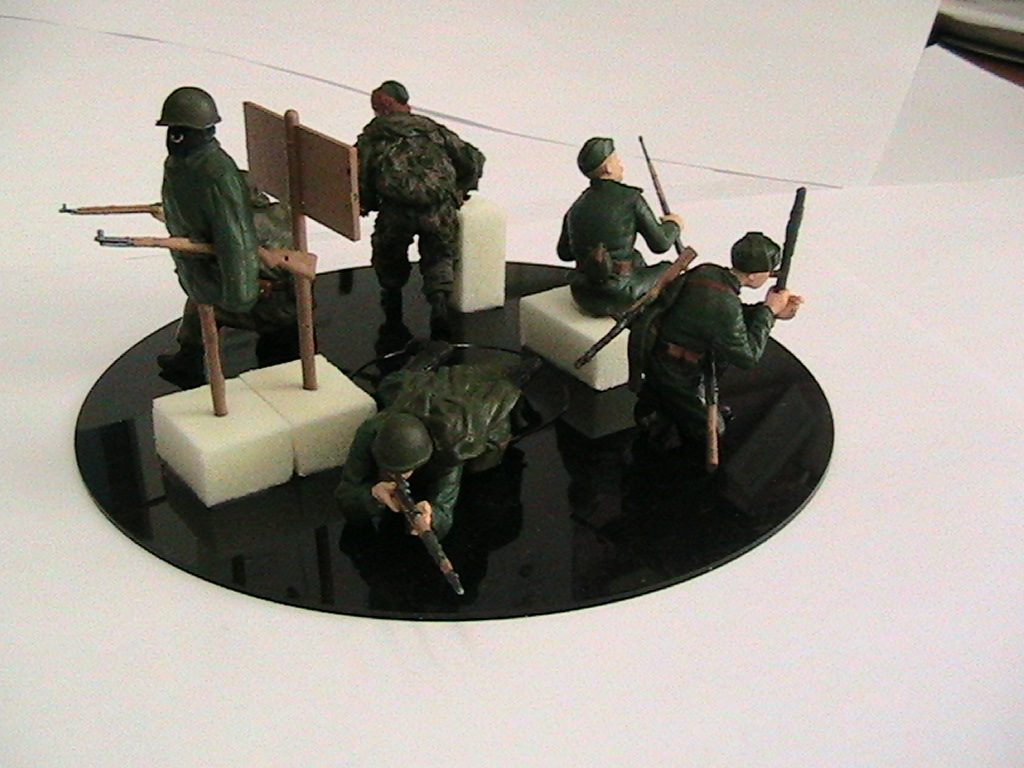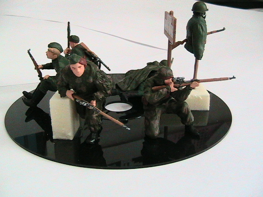 фигурок набрал на диараму "Оборона госпиталя" и задумка была поставить рядом ещё один дом двухэтажный- комендатуру, расположить там снайперов. однако в последний момент передумал и расположил в "Обороне госпиталя" с тыльной части здания Зис-5в , санитаров , группу прикрытия из снайперов. Между зданиями ещё пушечный расчет должен был стоять. Диараму "Оборона госпиталя " скомкал конечно, но иначе она ни в какие ворота не вошла бы...