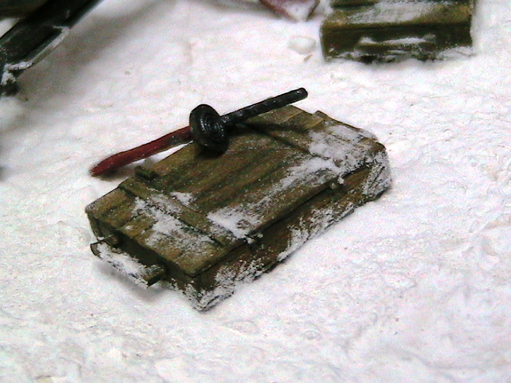 Да , но в наборе идет один ящик. Остальные взяты из другого набора Миниартовского.Не помню кто писал, но якобы наши выпускали ящики со снарядами без ручек, в отличие от немцев (а зачем нам удобства?)