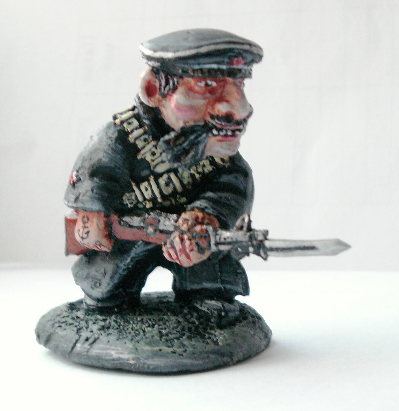 Фигурка вылеплена из пластилина и отлита из эпоксидки,ППШ-41 взят из набора Драгон 1-16 масштаба.Получился этакий недоросль призыванный в адское пекло города на Волге.
