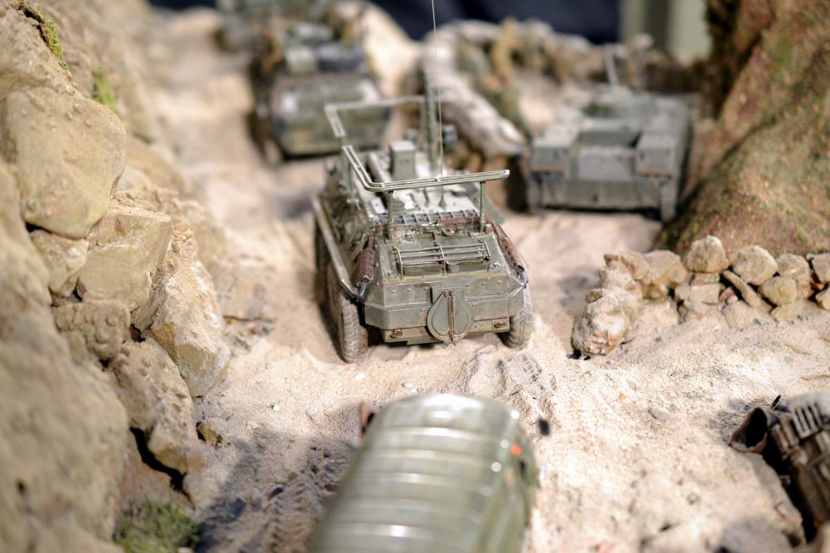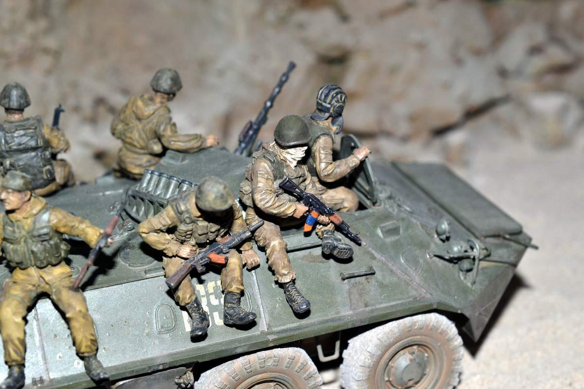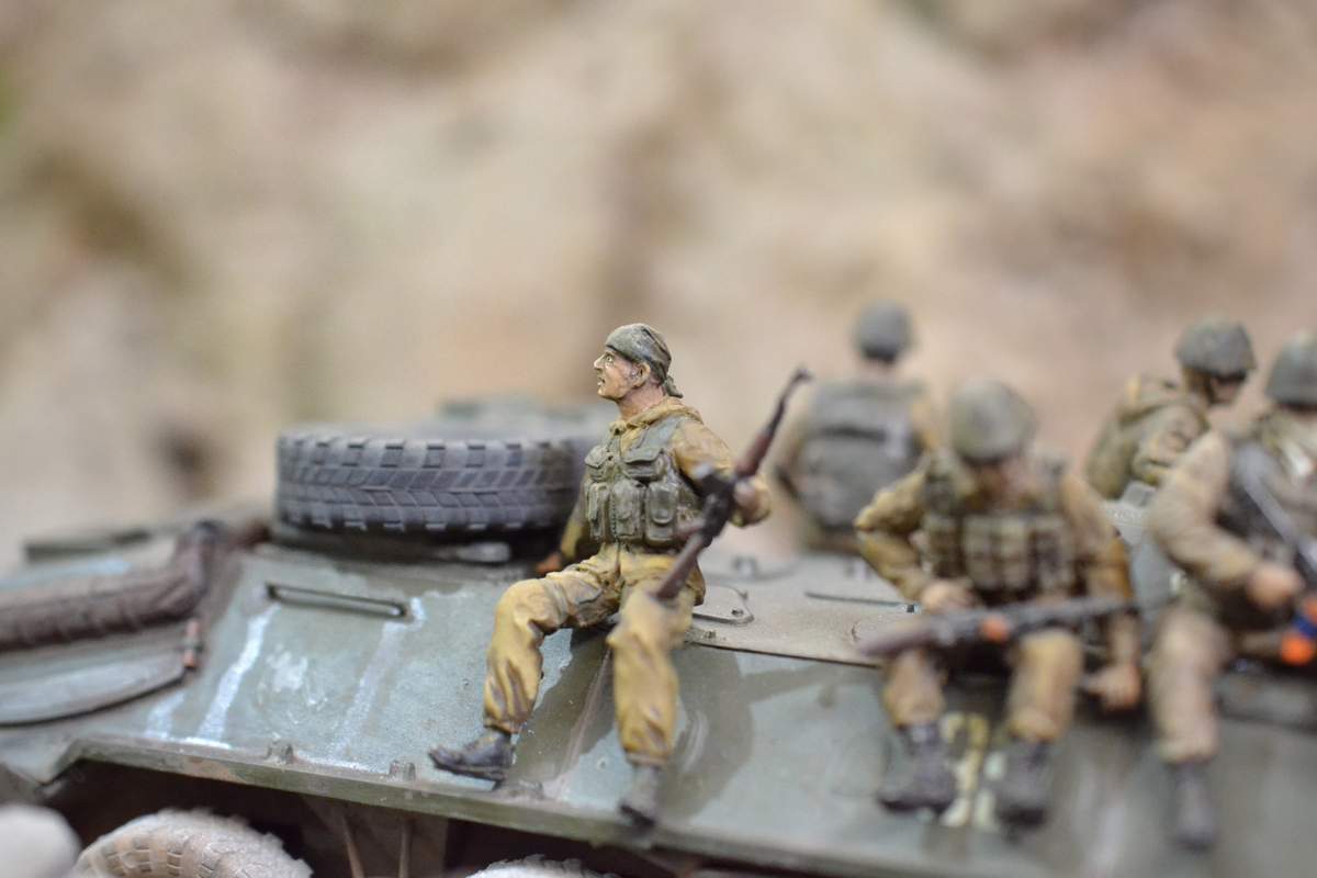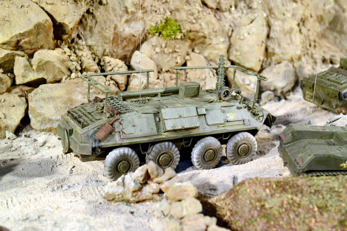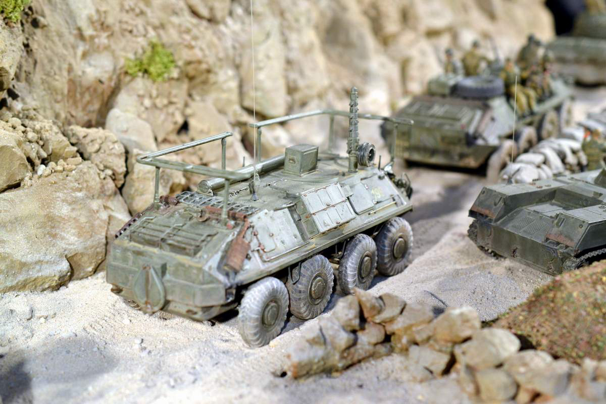 Её "игрушечность" не в простоте сборки, а в примитивной копийности. Точнее, в грубой некопийности. И как её ни крась, как ни натирай пигментами, так и остаётся детской игрушкой. Чтобы она стала похожа на настоящий БТР-70, её очень основательно перепиливать надо. И как, минимум, менять колёса.