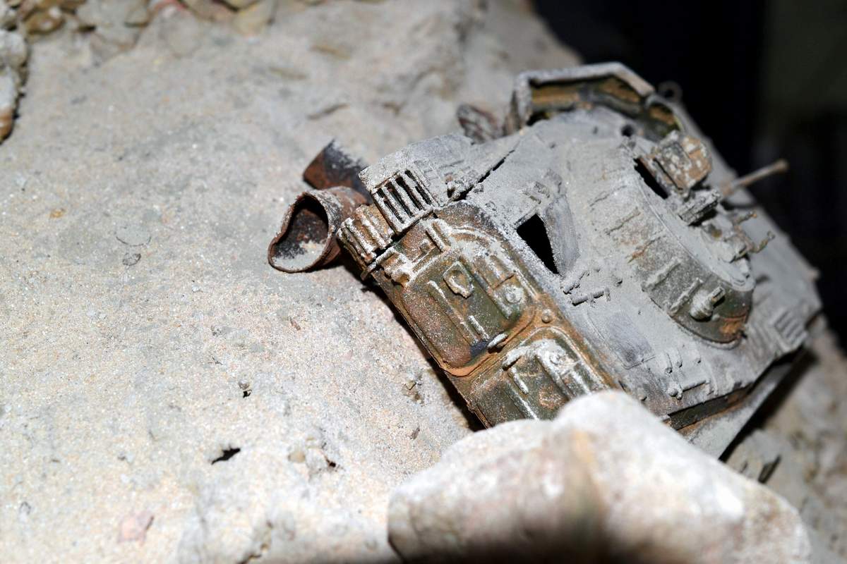 ученик, БМП завалили, а на ней даже гусянка от взрыва не слетела? Не верю. И по окраске - отбили бы её, например, копотью местами и ржавчиной. Горела всё-таки машина. И потом стояла, как вы пишите, не один год. Металл окислился ещё во время горения
