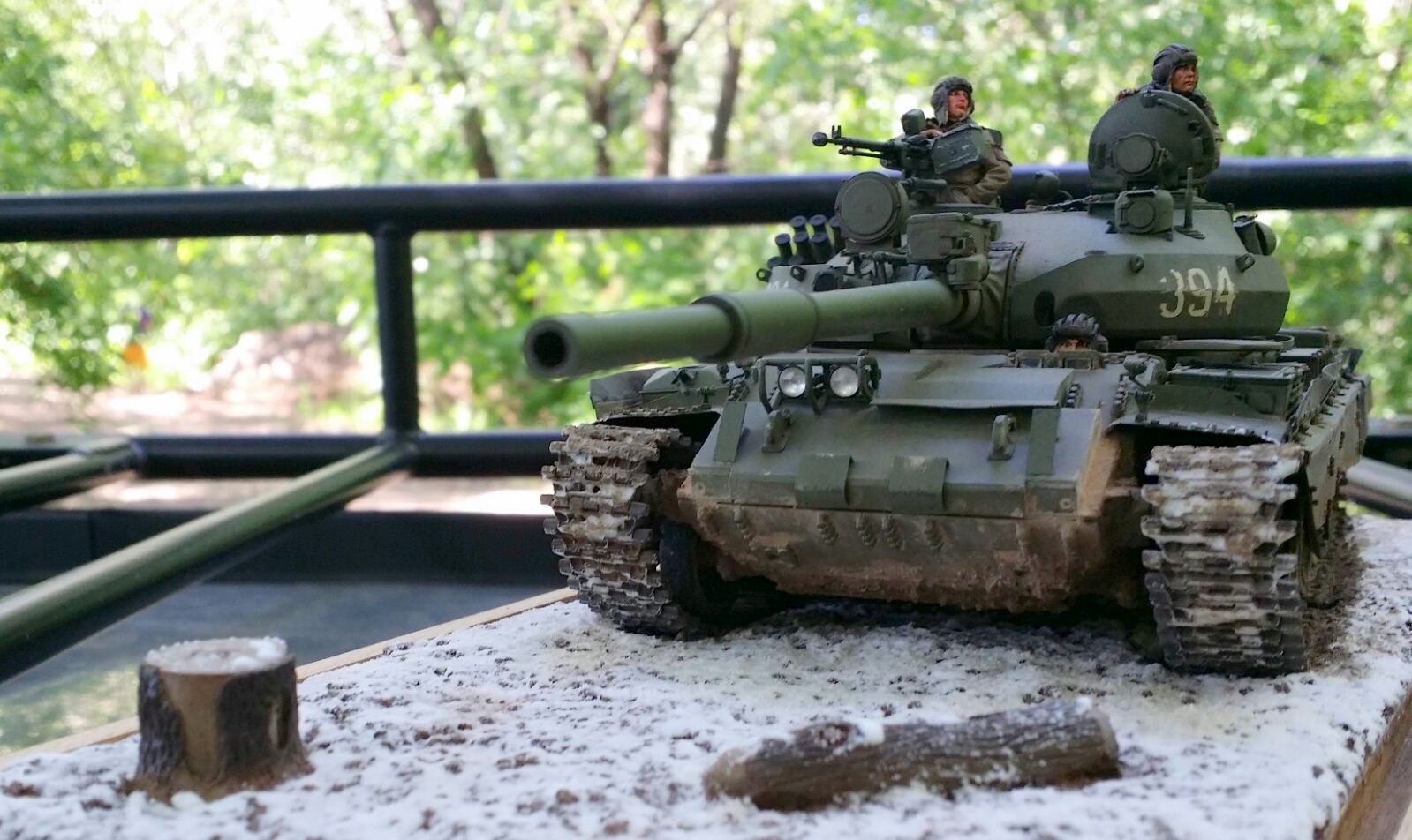 Здорово!Про покраску не буду писать,так как я не умею. но вот что бросилось в глаза-что многотонный танк стоит на земле,а гусеницы не провалились в мягкий грунт