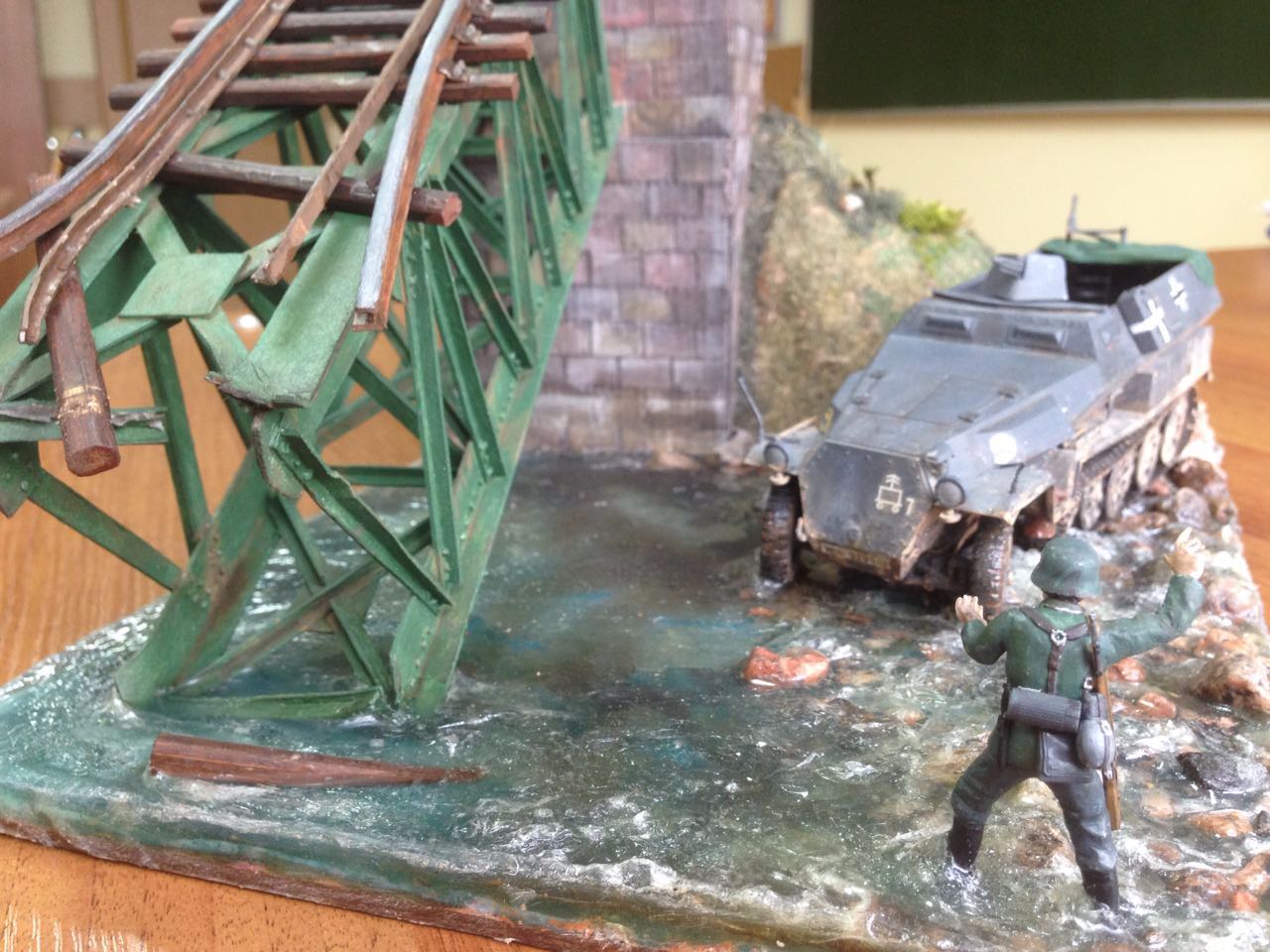 Очень хотелось попробовать воду, где-то увидел на переправе Pz 4, и так как уже был готов ханомаг, решил его разместить на диораме.