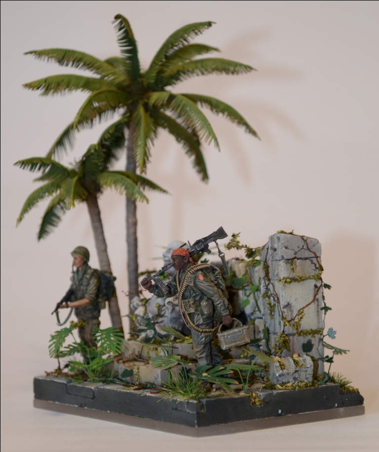 ...приветствую всех, коллеги! Вот и завершена работа над диорамкой. Это первая моя работа на профессиональном уровне в масштабе 1/35, а так больше влечет авиация в 72-м. Буду краток, причина всему этому: множество фильмов, как художественных так и документальных. А главное удалось побывать в военных музеях и в некоторых местах из многих этой войны (Ханой, Сайгон).