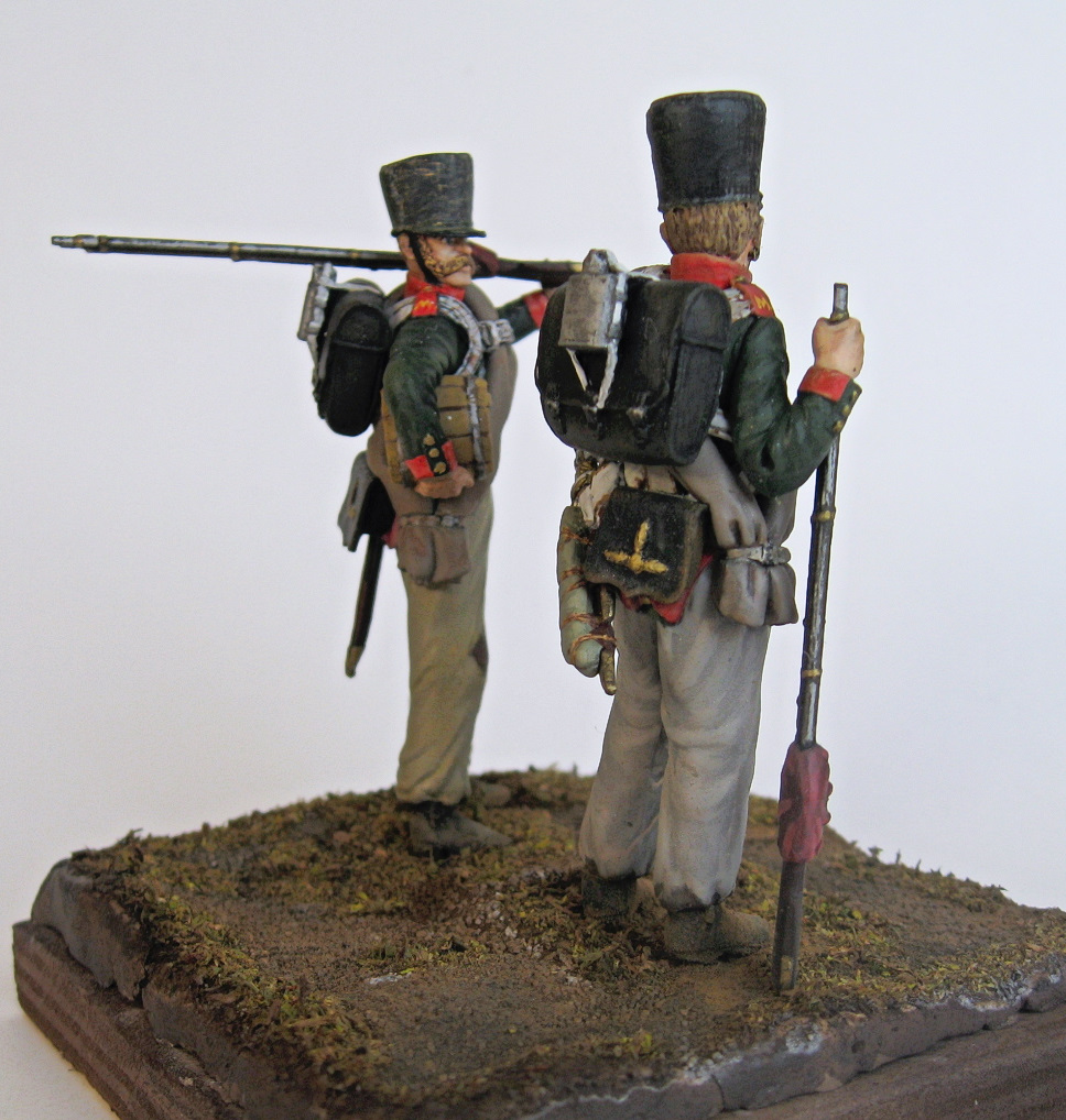 Изображены рядовые 3-й фузилерной роты, 1-о батальона Московского гренадерского полка, на период заграничных походов 1813-14 годов.