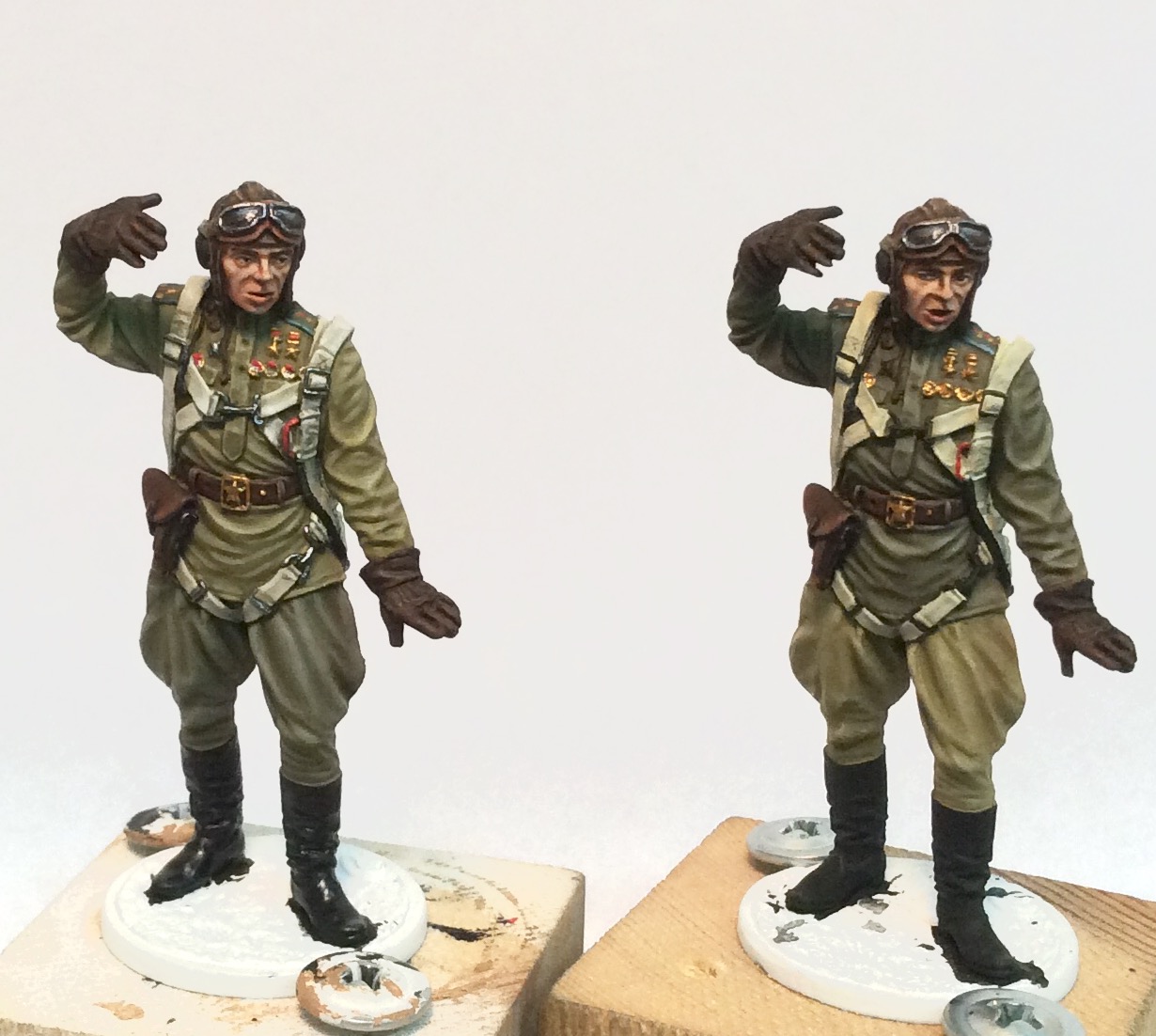 Почему не знаю, но именно с этой строкой из песни у меня ассоциируется эта фигура От ЕК Кастингс, скульптор Юрий Пятков. Олово 54 мм. Акрил, темпера ПВА. Работаю сразу с двумя летчиками. Фигуры в процессе
