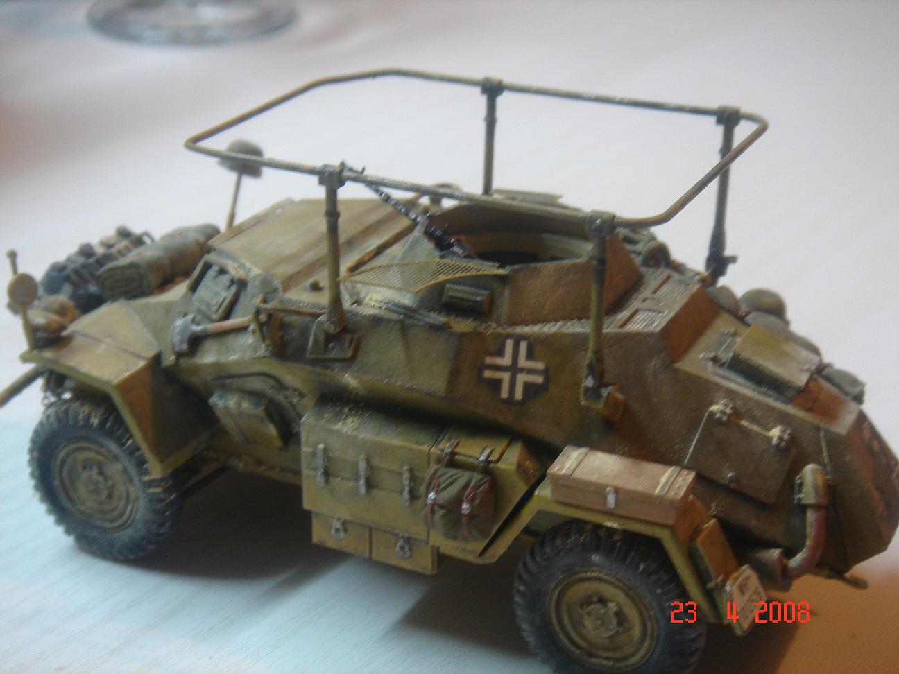 Что могу сказать по представленной модели. Достаточно добротная изкоробочная сборка, но есть места, где заметен незачищенный стык от пресс-форм. Пластиковые брезентовые скатки надо или сильно дорабатывать, или все-таки делать самому из, допустим, туалетной или оберточной бумаги, опять же тогда и ремни на них можно сделать нормально. Зачем повсюду каски (особенно там, где до них из БО не дотянешься)? Их действительно частенько вывешивали наружу, но уж не на габаритные "усы"... Покраска - так и не понял - кистью красилось? Поверхность имеет явно выраженную факутуру - или следы от кисти, или это так потом неровно спрей из баллончика лег, зернами. Из баллончика, ИМХО, заборы красить хорошо, для всего остального у него распыл слишком неконтролируем. Пигментом действительно местами "присыпано", чуть ли не изображая горку песка. В общем, получилось как-то... не то, чтобы неаккуратно, скорее неакцентировано. То есть цельного впечатления окраска не создает.