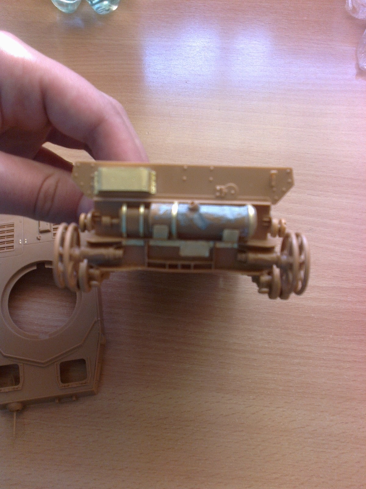 Гусятину нужно покрасить отдельно и прицепить на окрашенный танк.